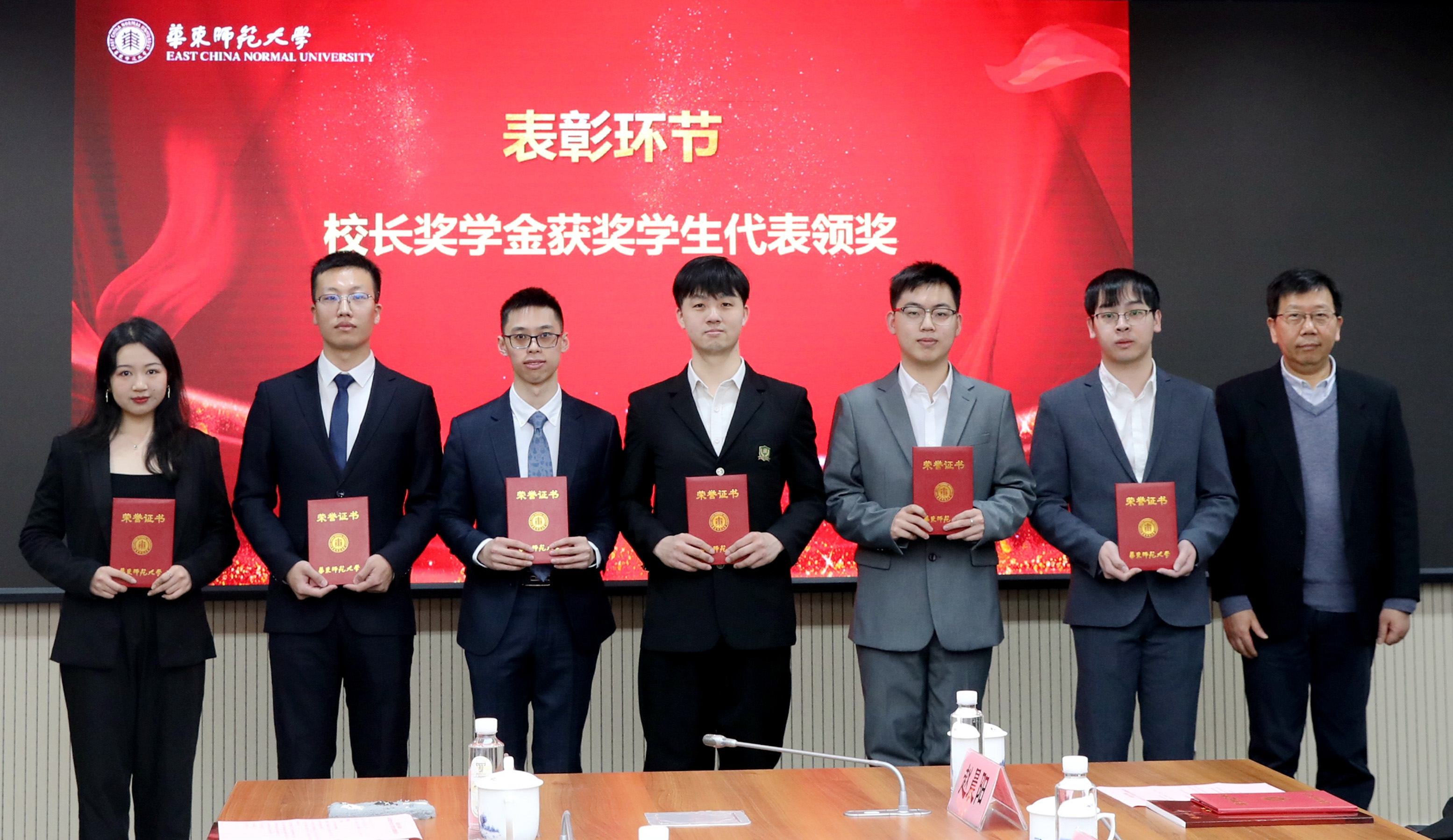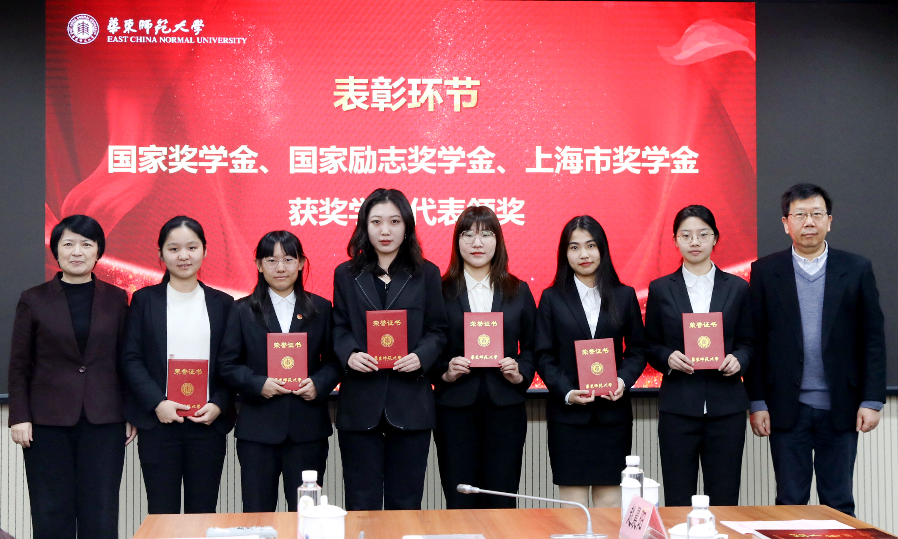 党委书记梅兵、校长钱旭红为国家奖学金、国家励志奖学金、上海市奖学金获奖学生代表颁奖