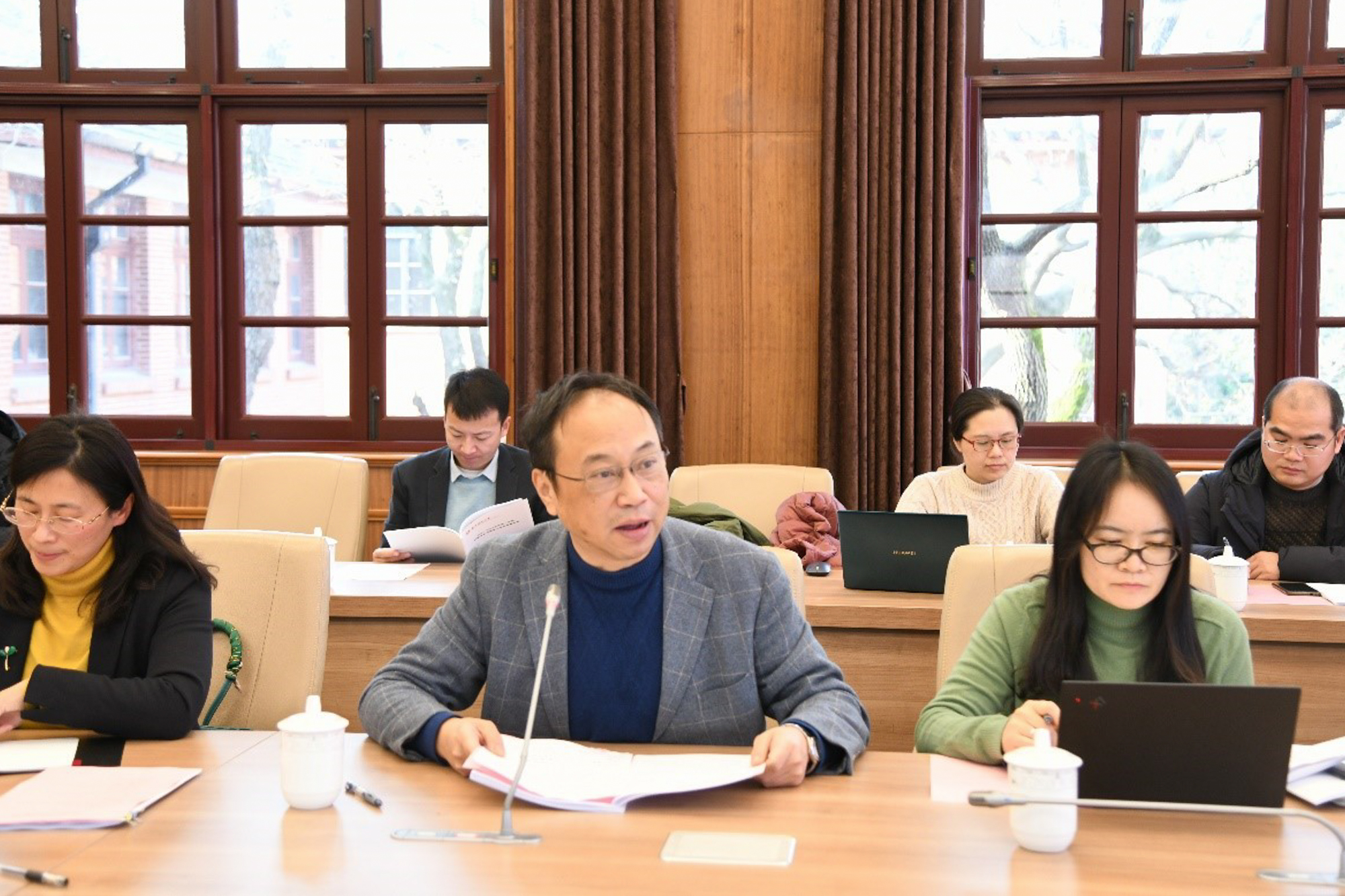 12月29日上午,2021-2022学年第一学期末本科教学工作例会在普陀校区办公楼小礼堂召开,会议采用直播形式在线上同步进行。副校长戴立益、各学部院系分管本科教学院长(系主任)、书院院长以及教务处工作人员等40余人出席线下会议,各本科专业点(教学点)责任教授60余人出席线上会议。会议由教务处副处长周先荣主持。