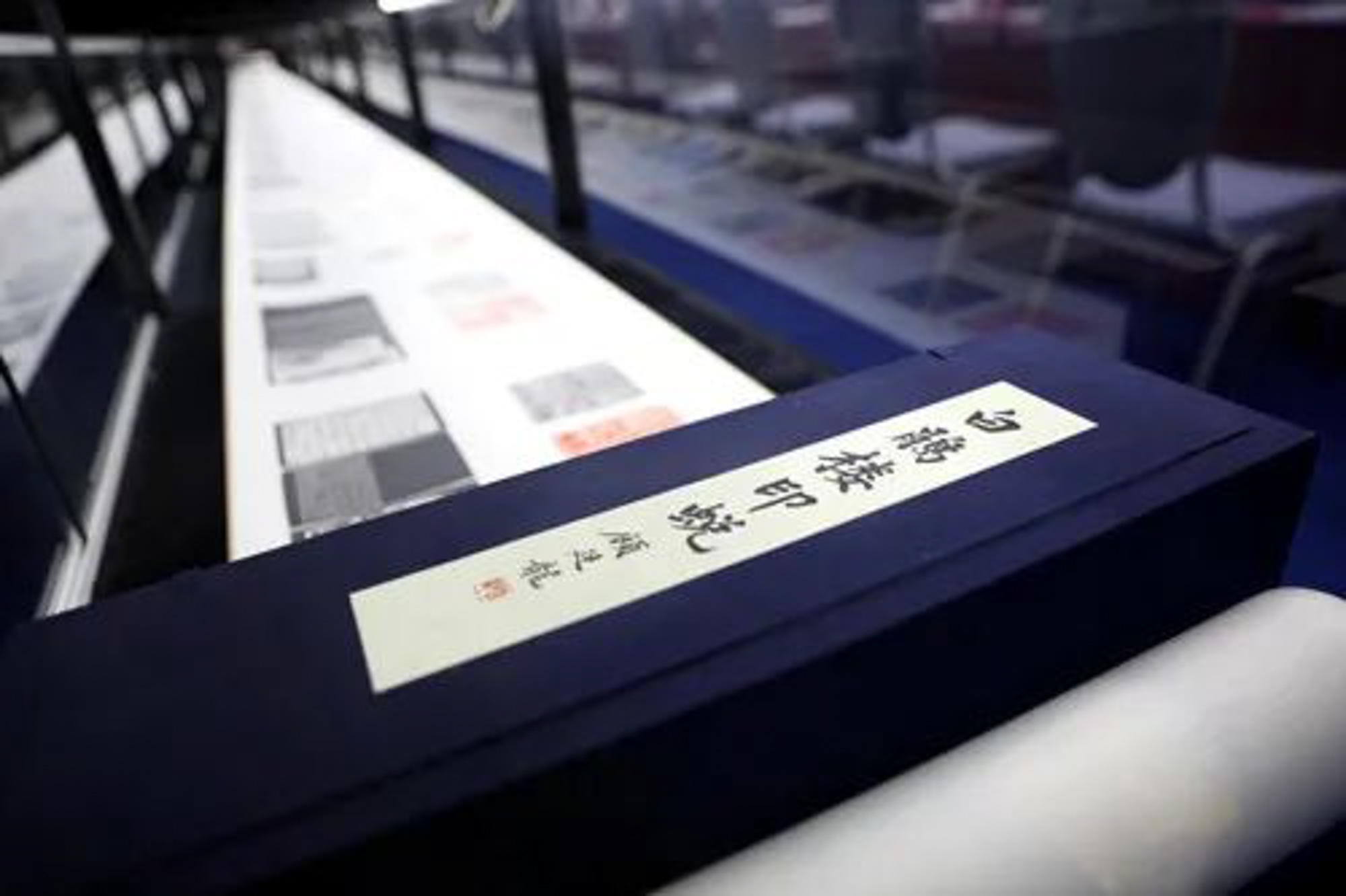 此外,今年的春联活动现场还多了一种艺术形式——篆刻。由华东师大美术学院张索教授策划的谢磊明、方介堪原拓印谱特展同时展出,作品为8米长集106方的《白鹃楼印蜕手卷》,是方介堪为华东师大著名历史学教授、古文字学家戴家祥教授所刻印章集成。《白鹃楼印蜕》不仅是两人情谊的见证,也展现了方介堪篆刻风格的全貌。