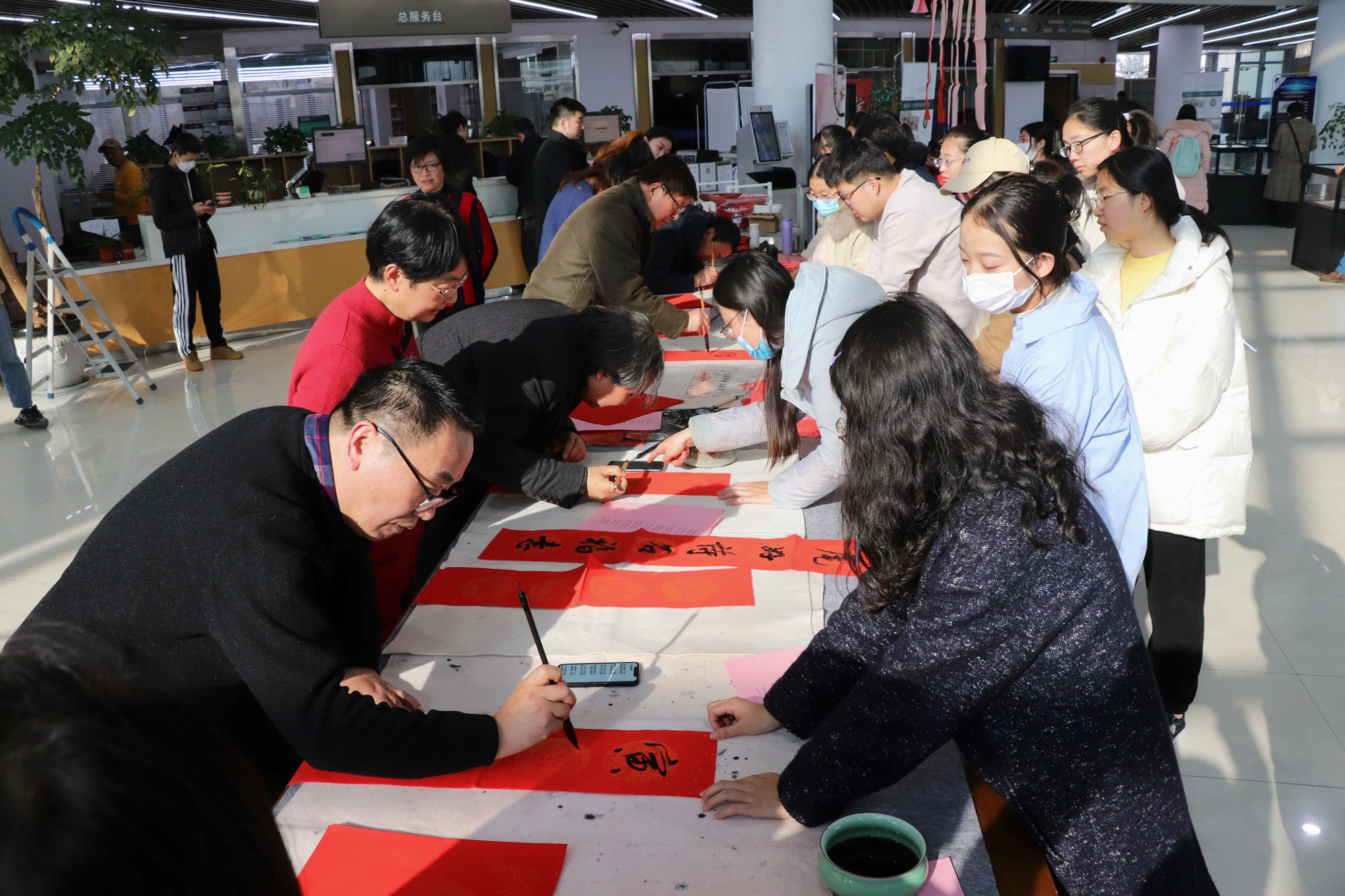 2021年12月30日下午,2021年岁末“触手生春”春联书写活动在华东师大闵行校区图书馆开幕。活动由校工会、图书馆、美术学院联合主办,上海楹联协会、校教工书画协会、海上风楹联学社协办,并得到了中华优秀传统文化传承创新研究院的大力支持。校工会、图书馆相关负责人以及校内外专家学者、校友出席了开幕式。
