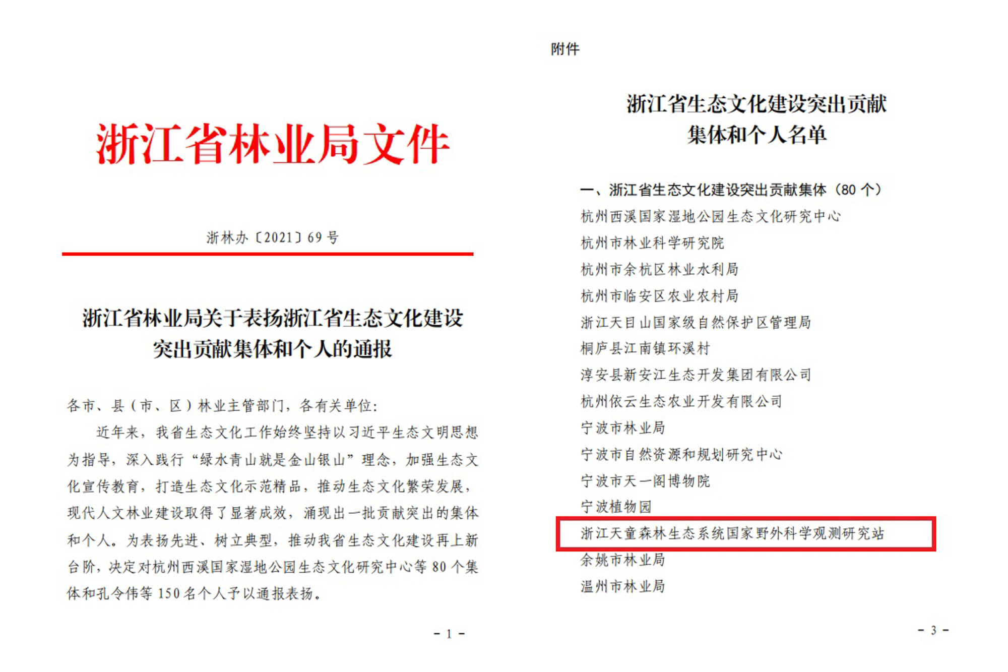 近日,浙江省林业局公布了浙江省生态文化建设突出贡献集体和个人表彰名单,华东师大浙江天童森林生态系统国家野外科学观测研究站(以下简称“天童国家站”)被授予“浙江省生态文化建设突出贡献集体”荣誉称号,是唯一获奖的省外高校单位。