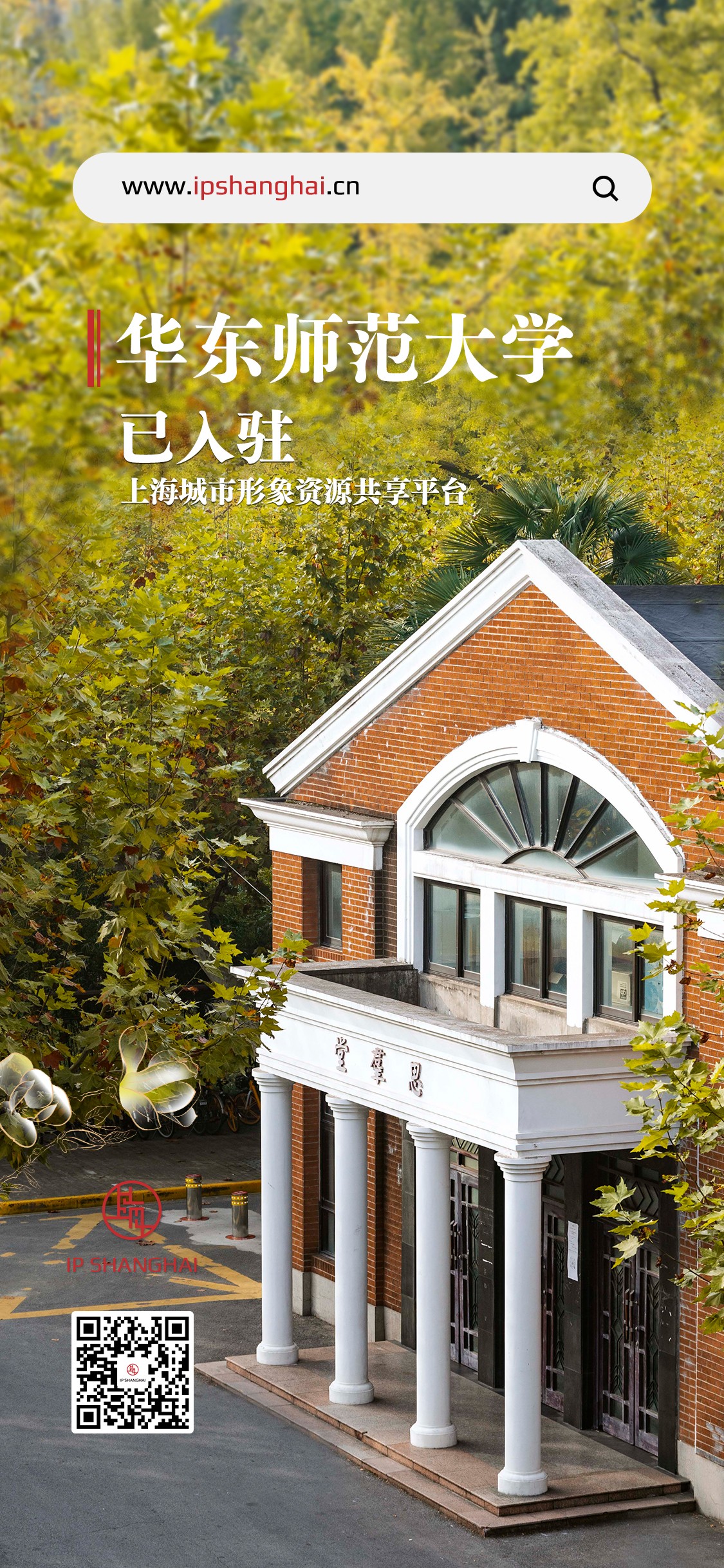 为提升上海城市软实力和国际传播能力建设,由上海市委宣传部、市委外宣办发布的上海城市形象资源共享平台 (IP SHANGHAI) (www.ipshanghai.cn) 在第四届进博会上正式上线,同步启动面向全球的上海城市形象资源征集。华东师大作为首批单位入驻,目前已上线发布的作品《第十四届国际数学教育大会的对外传播》《构建以留学生为主体的海外传播体系》。