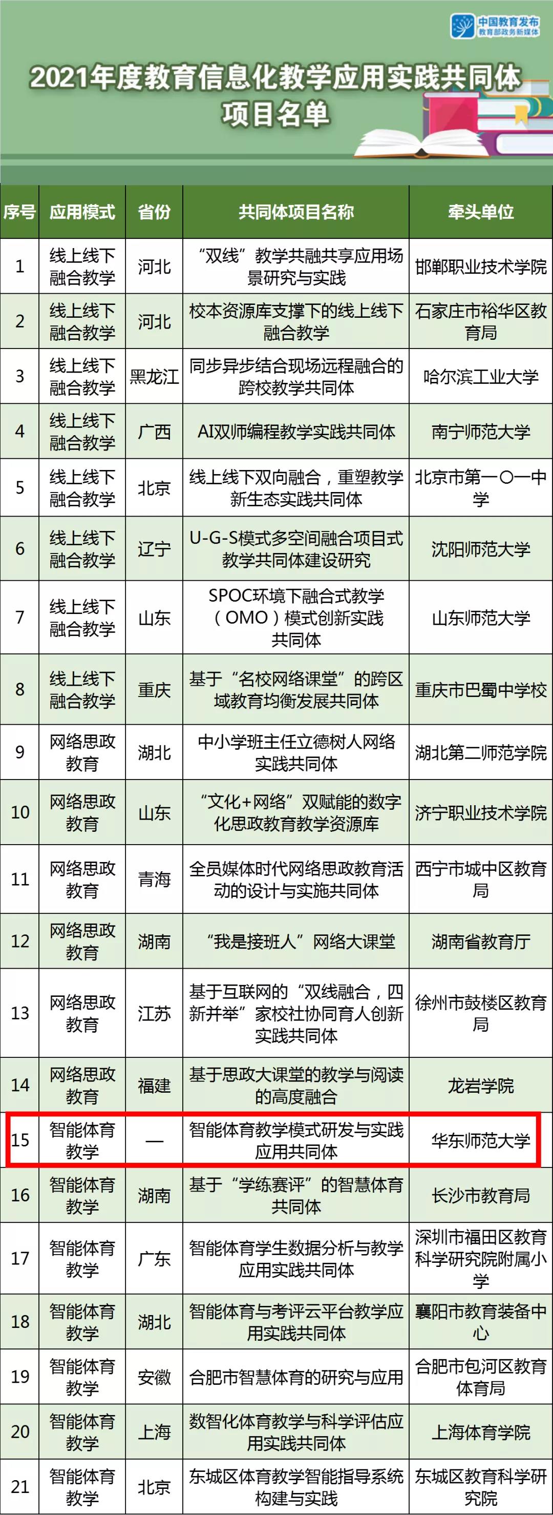 教育部公布2021年度教育信息化教学应用实践共同体项目名单,华东师大上榜!