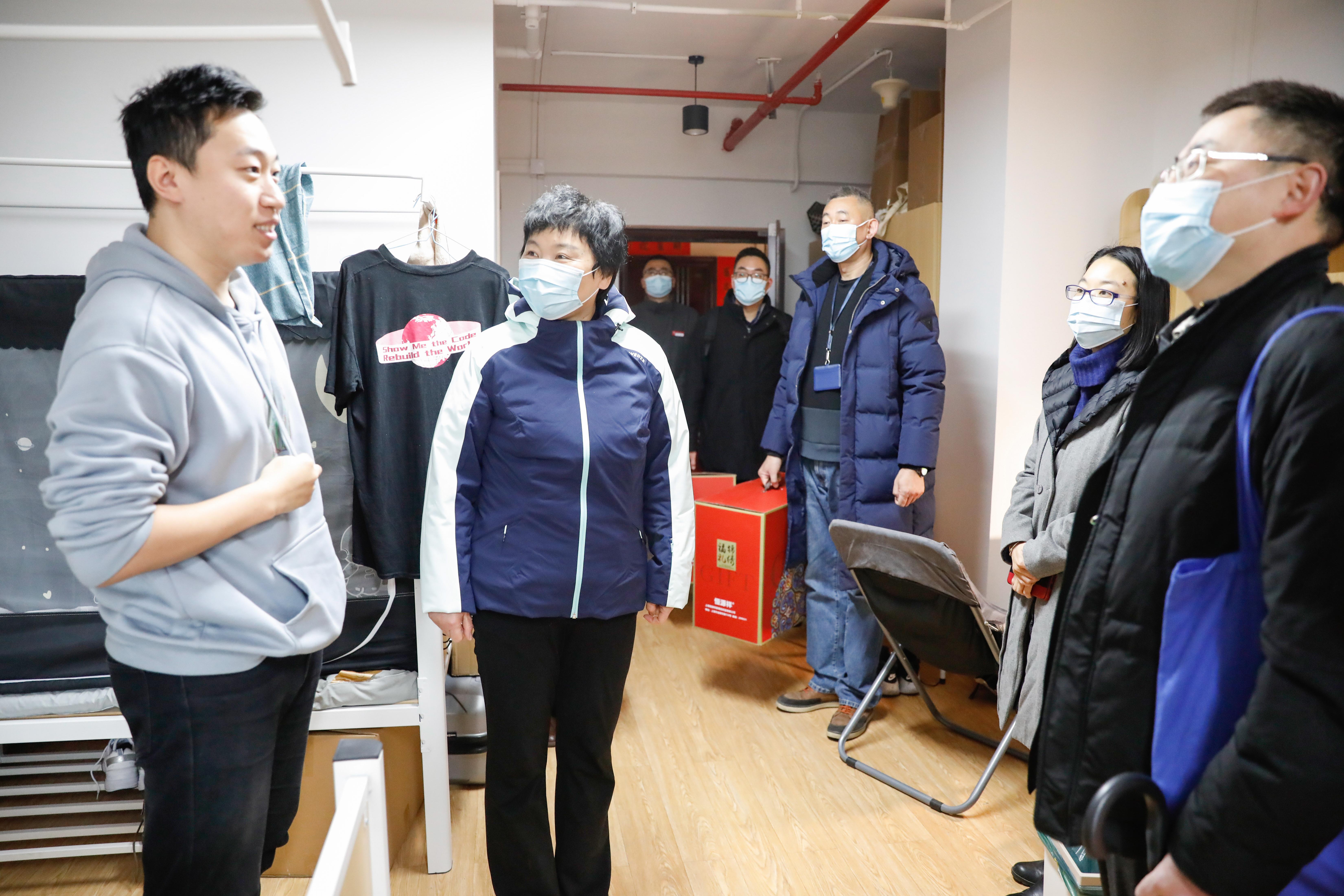 校领导还前往本科生公寓、研究生公寓、食堂餐厅等处,了解寒假留校学生的学习和生活情况,确保寒假期间后勤服务保障工作稳定有序、顺利顺畅。