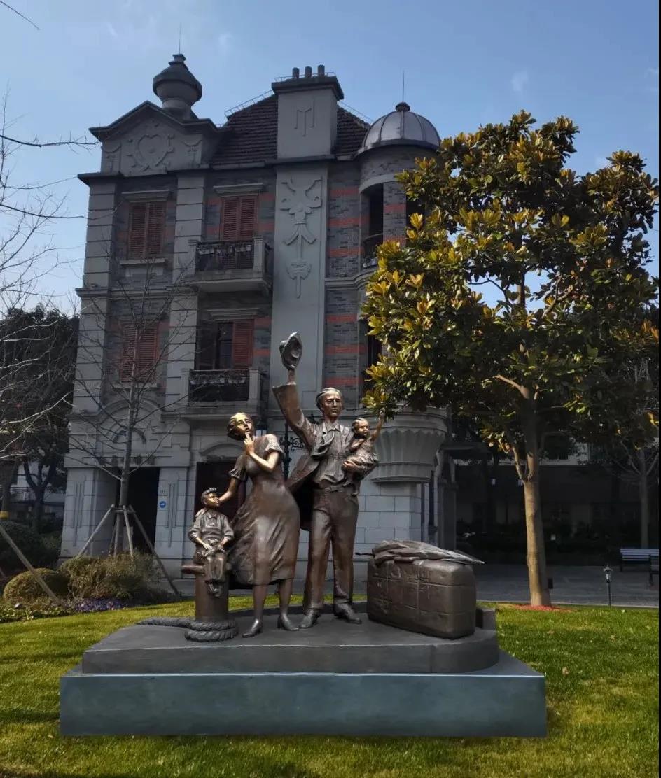 第二次世界大战期间,上海收留了约两万名欧洲犹太人难民。这组雕塑长2.8米、宽1米、高2.6米,以浪漫主义表现手法,刻画了战争结束后幸存下来的犹太难民大卫一家依依不舍惜别上海的情景,向世界展示上海开放包容的城市精神。