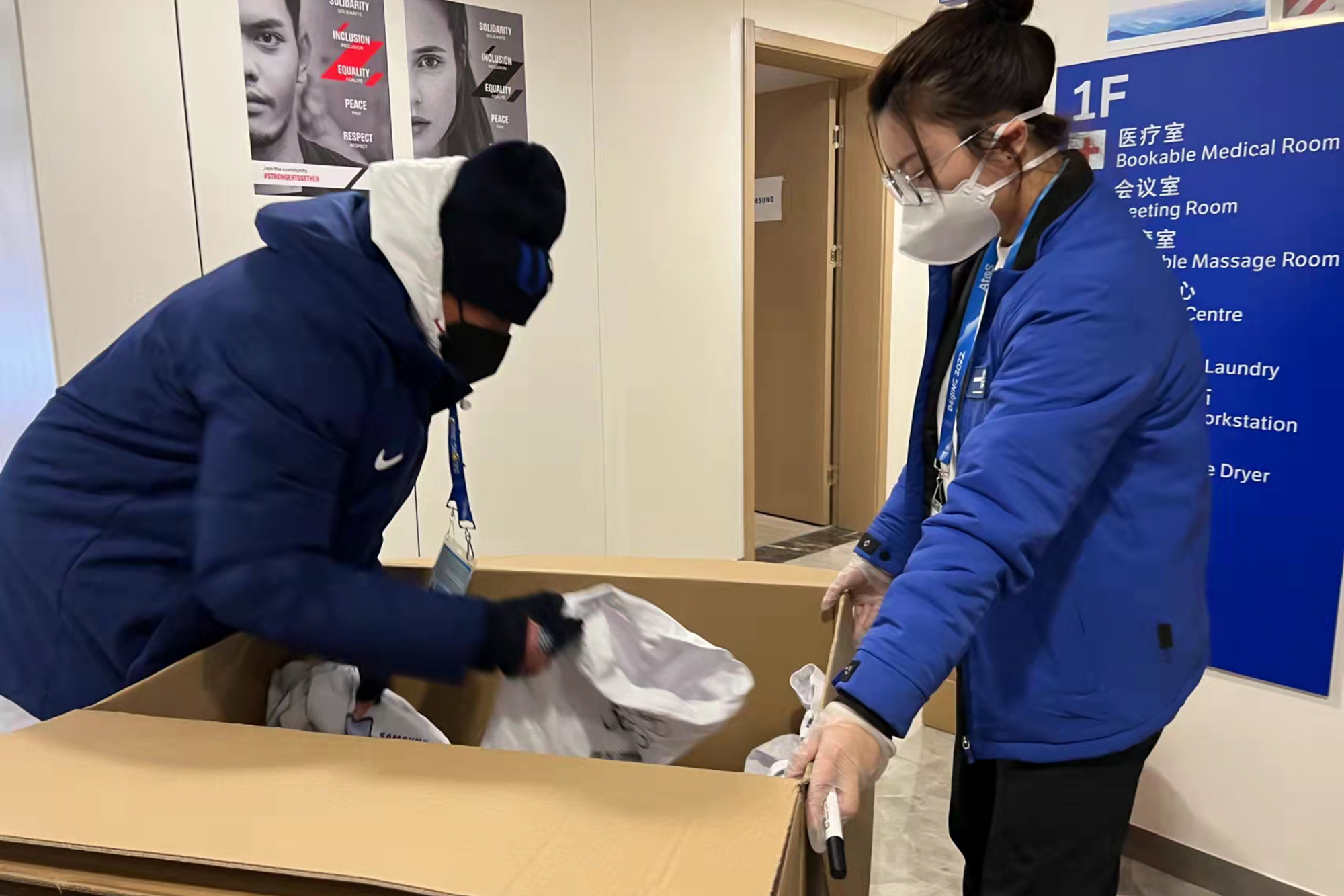 专业度也体现在安全防护方面。“防疫这一点中国做得非常好,冬奥村和酒店都设置了消杀通道。我们每天上岗前都需要做核酸检测,确保大家的健康,口罩和手套也都是全程佩戴的。”她说,“饮食和住宿条件也相当不错,在这里工作感觉很安心。”