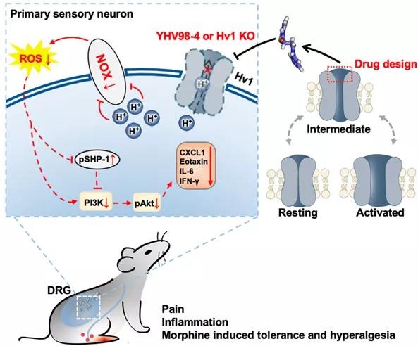 该研究首次报道了Hv1在神经系统中新的细胞类型中的新功能,并开发了首批具有良好选择性且具有invivo应用潜力的Hv1抑制剂,并结合其他手段,揭示了Hv1可能是潜在的慢性疼痛治疗及改善吗啡引起的不良反应的新靶标。