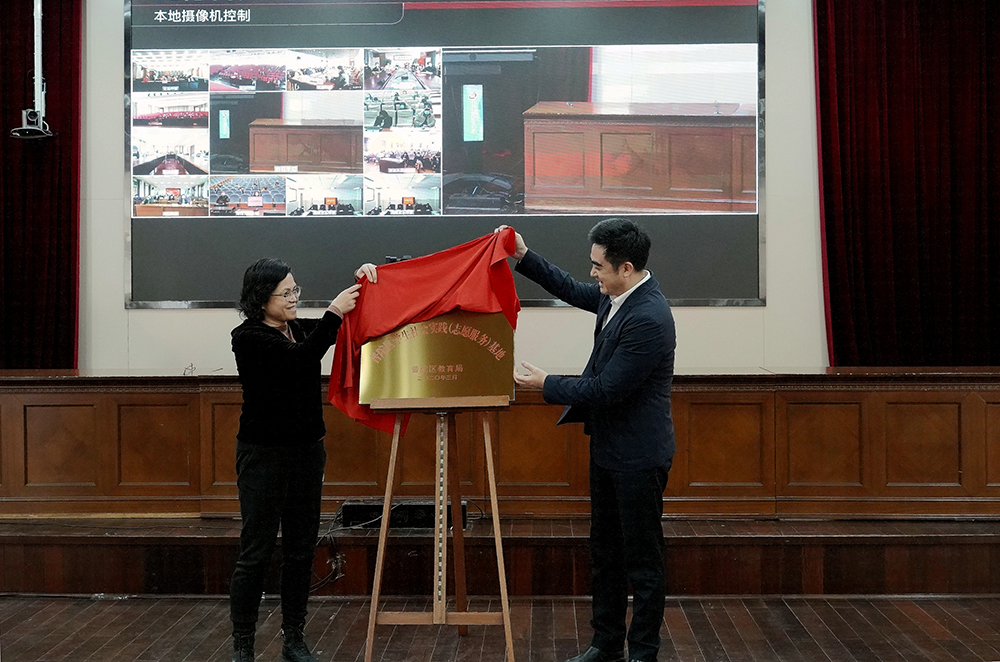校党委常务副书记王宏舟、普陀区副区长王珏为普陀区学生社会实践(志愿服务)基地揭牌