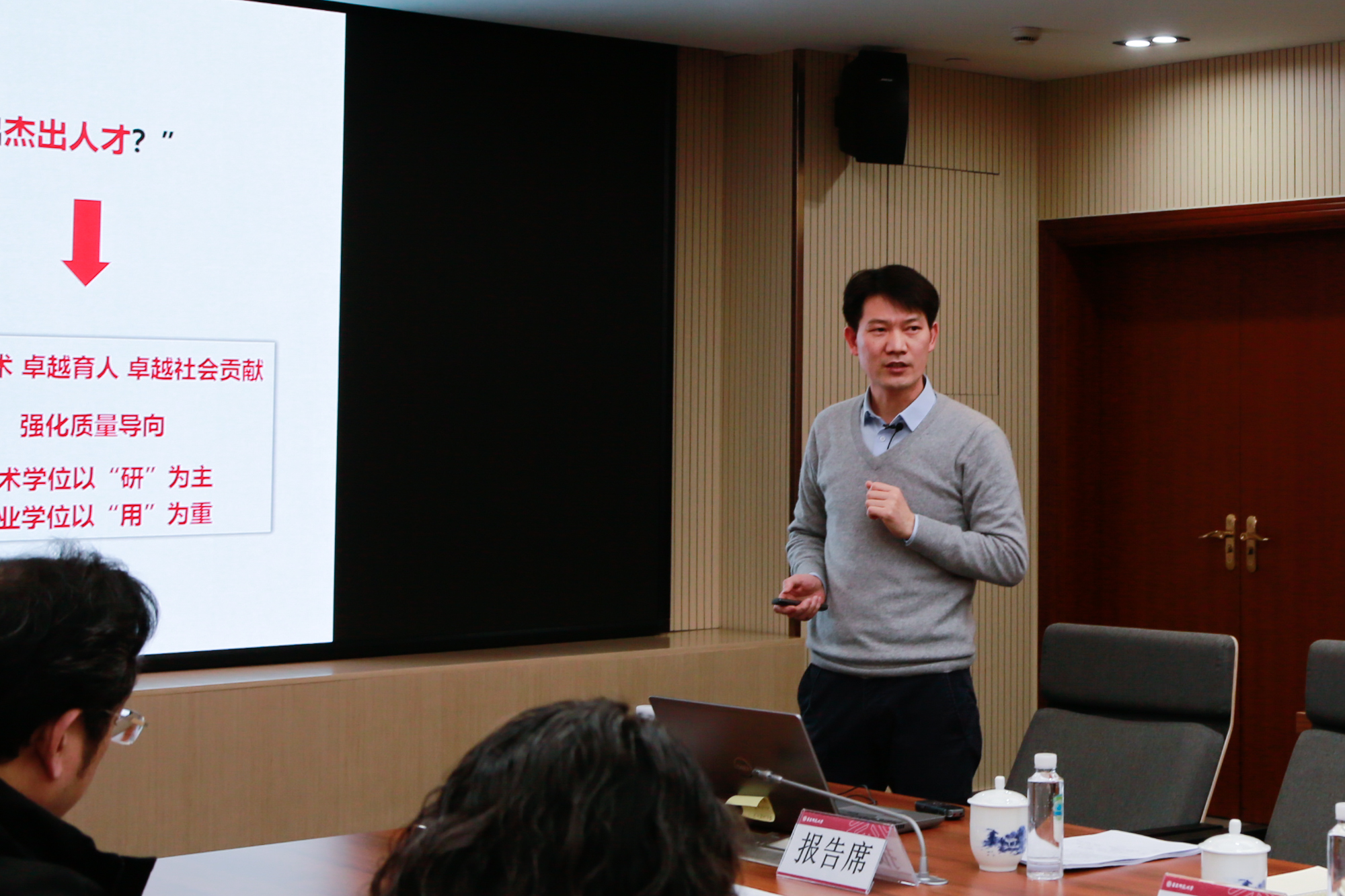 吴健从研究生卓越育人的理念与目标、问题与举措、协同与愿景三个方面汇报了学校研究生教育的新举措新愿景。