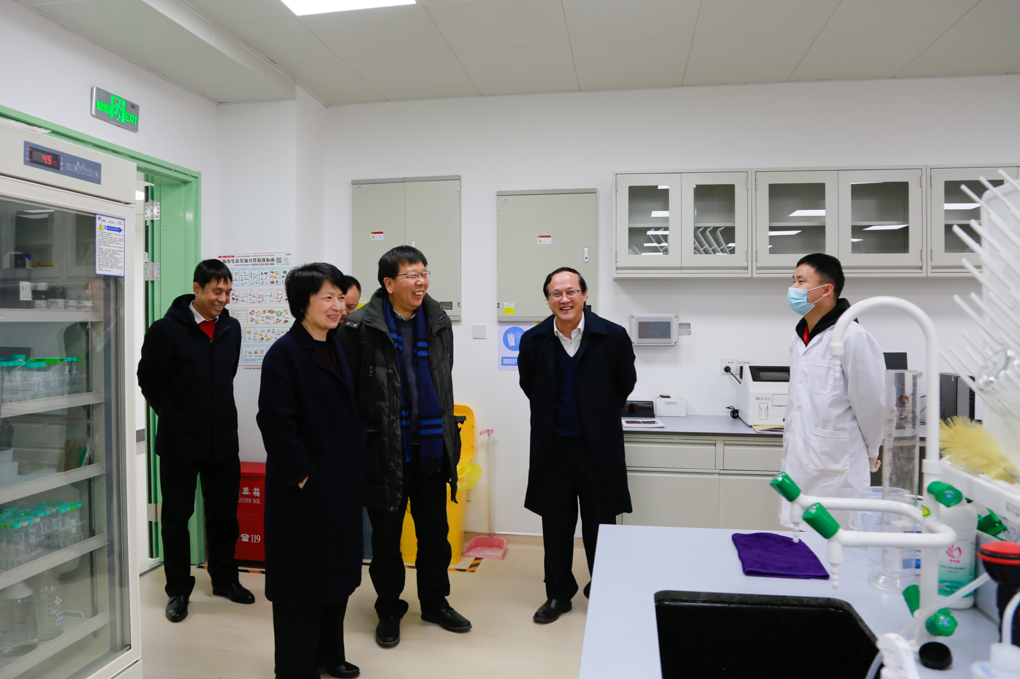 2月21日下午,校党委书记梅兵、校长钱旭红、副校长雷启立一行调研医学与健康研究院并进行开学检查,学校办公室主任张惠虹、基建处处长王军、副处长谢志发陪同调研。