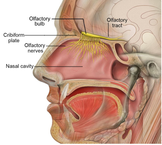嗅觉作为基本感觉之一,对于物种生存和适应环境具有重要作用。嗅觉障碍是多种疾病(如神经精神性疾病和新型冠状病毒性肺炎)的常见临床症状。嗅觉系统由鼻腔嗅粘膜(外周嗅觉系统)、嗅球、嗅觉中枢三部分组成,气味分子被鼻腔嗅粘膜的嗅觉神经元特异性识别后,将信号传递到嗅球-嗅觉信息传导的中转站,嗅球进一步处理嗅觉信息后,再传递给嗅觉中枢—大脑的嗅皮层(图1)。近年来,科学家们对嗅觉调控相关神经环路的研究取得了较大进展,但对嗅觉调控的外周靶点还知之甚少。