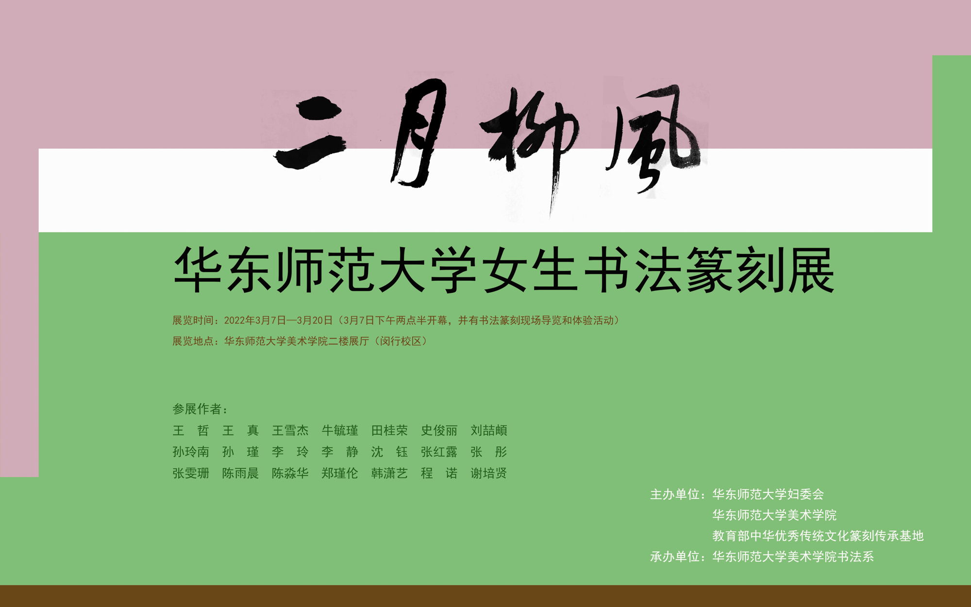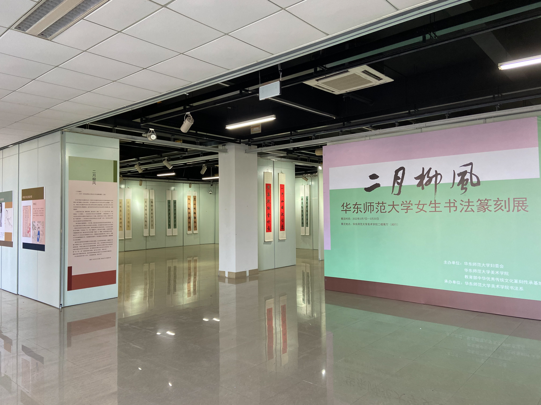 “二月柳风——澳门永利皇宫官网入口女生书法篆刻展”是2019年华东师大美院主办的“彤管风雅——女生书法展”的升级版,已成为该校女生书法篆刻展的重要品牌。