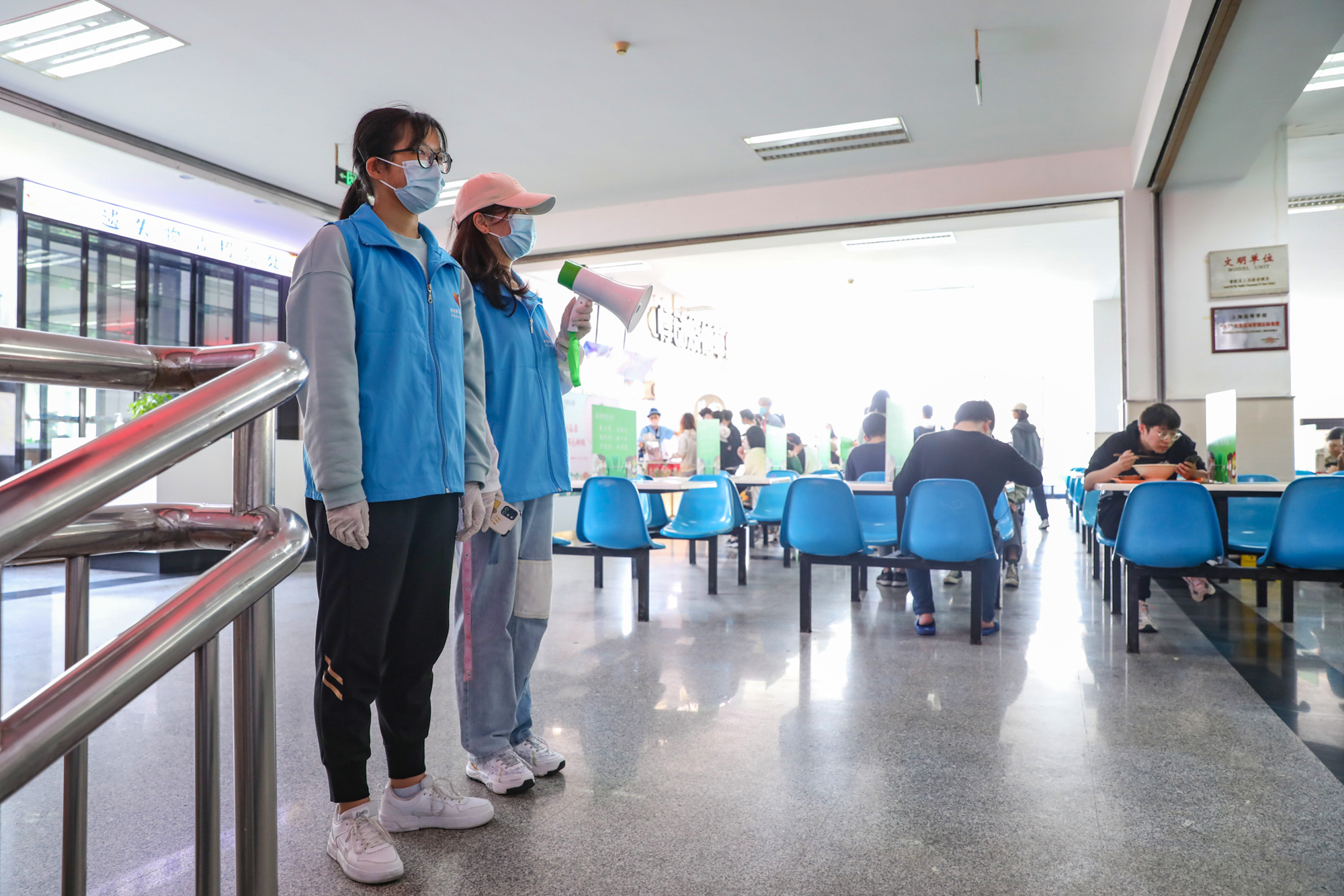 经需求配岗,协助进行核酸检测、食堂秩序引导、物资运送等志愿服务活动。今天,共有166名志愿者在岗做好各项志愿服务工作。同学们守望相助,共克时艰。