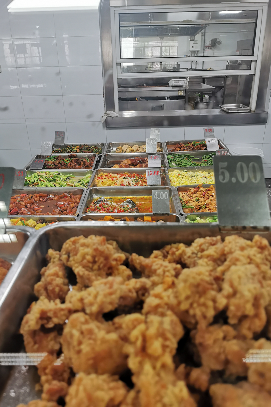 两校区各食堂正常供餐,供餐种类丰富多样。要求师生进入食堂自觉佩戴口罩,配合测量体温。