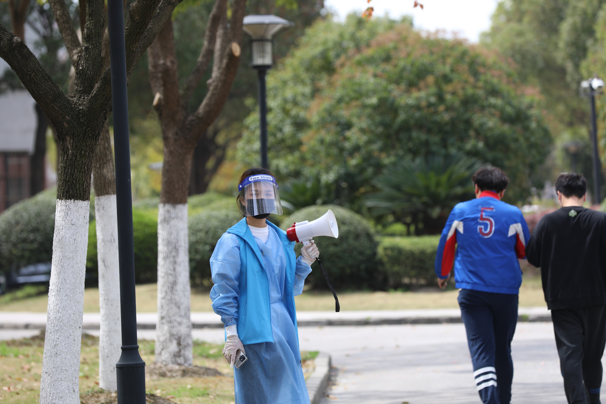 化身大白的学生志愿者以及在闵行校区的教职工,都参与到核酸检测维持秩序和校内送餐等志愿者服务工作中,争分夺秒只为按时完成全员核酸,并为同学们送上每一餐,感谢每一位华东师大人理解、支持、配合。