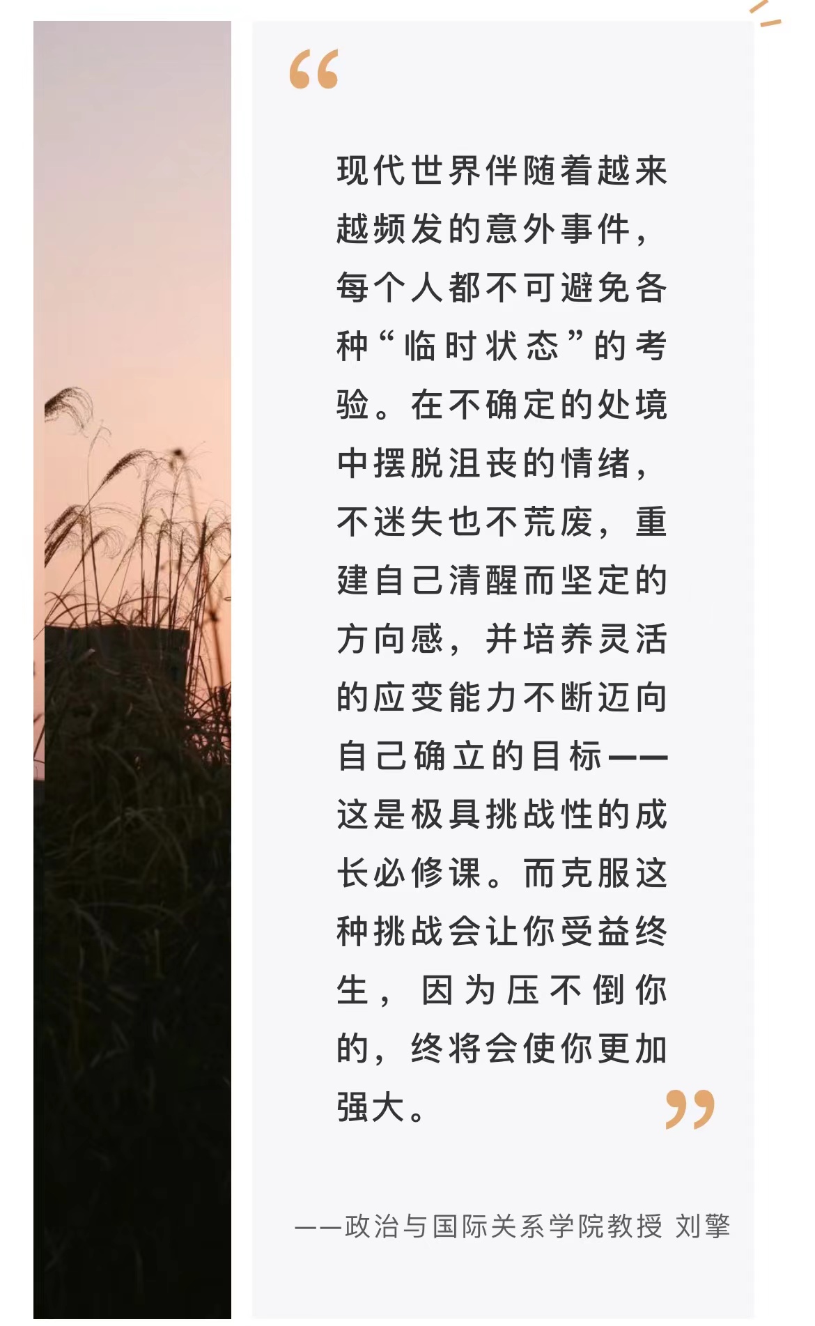 “越是在艰难的日子里,就越动容于‘我与你同在’的陪伴。”2020级政治学与行政学(双学位)的余超然看完“锦书”后分享道。2019级法学专业的杨亦宁则感叹,一句句叮咛嘱咐令她感同春风拂面,“正如老师们所言,即使有艰难,但是荣光也与我们同在。”