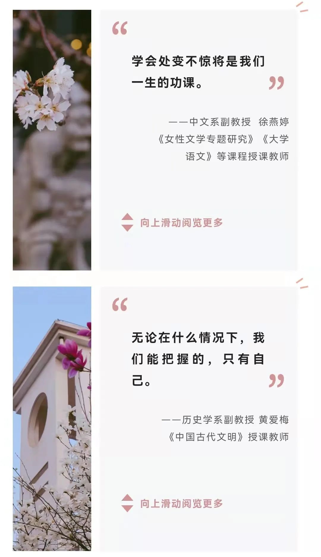 活动策划者之一、大夏书院辅导员曹安琦介绍道:“老师们的热情令我们感到十分惊喜,除了一段段接地气、有温度的文字之外,还有老师分享了书籍、音乐、摄影作品,从各自专业的视角与个人的经历出发,和学生一起观照疫情下的种种变化,传达了坚定而踏实的力量。”