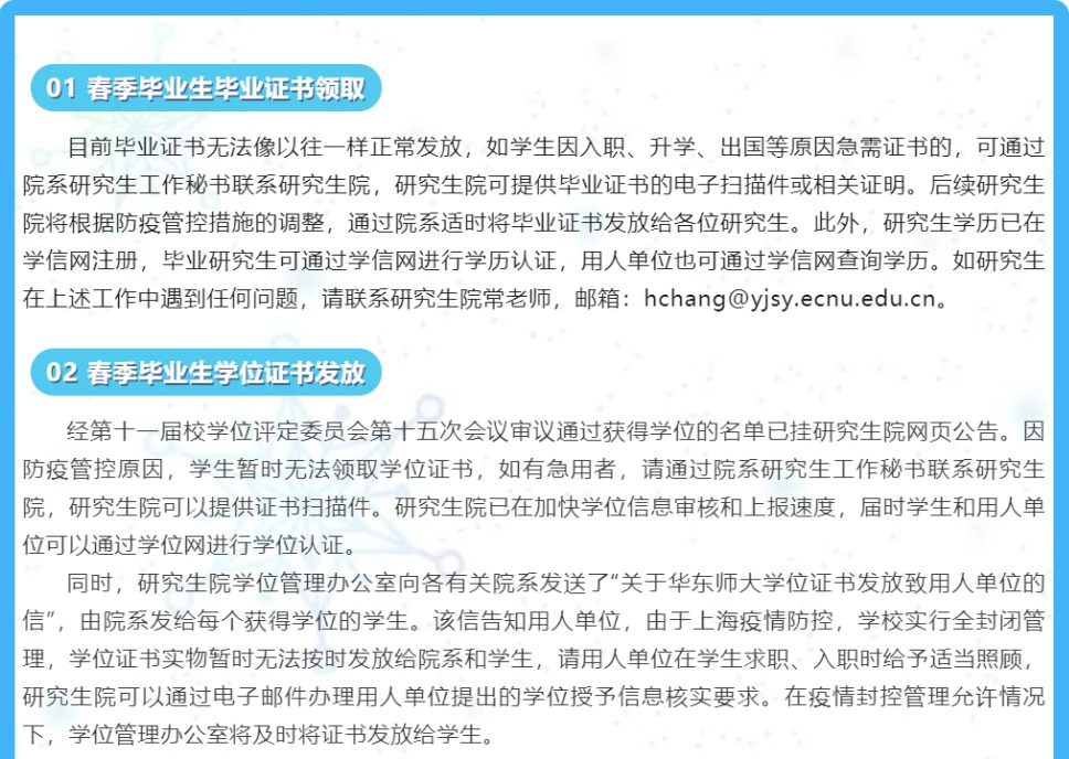 为了解决这个问题,研究生院向所有春季毕业生提供了《关于因疫情无法按时发放学位学历证书的说明信》,作为帮助毕业生办理入职、落户等的证明材料。