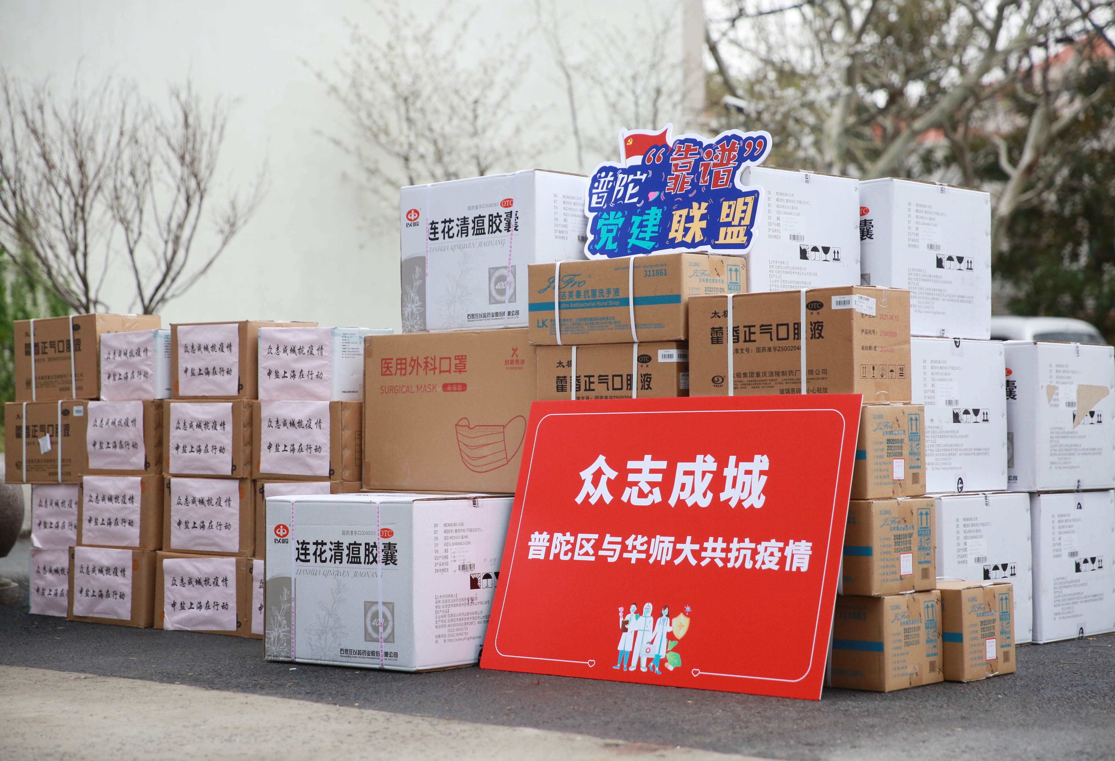 3月22日,同处疫情防控关键时刻的普陀区政府向学校捐赠了一批防疫物资,包括:一次性医用口罩6000个,N95口罩6000个,藿香正气口服液1200盒,连花清瘟胶囊4000盒,维他命金银花露600瓶,抗菌洗手液360瓶,果蔬洗涤盐10箱,天山雪晶盐20箱,方便面15箱,八宝粥6箱,神象健康香囊2箱,神象健康茶包2箱,为师生们的安全健康保驾护航。崇明团区委向学校捐赠大米2000斤、有机蔬菜2000斤。