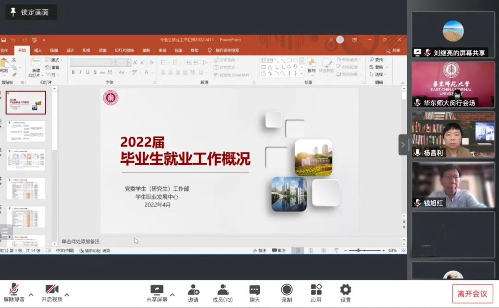 目前,上海疫情防控已经到了最关键吃劲的阶段,疫情的起伏反复,给上海各高校应届生毕业就业工作带来了前所未有的挑战。4月11日上午,华东师大2022年毕业就业工作会议召开。