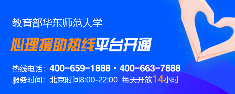 在此疫情防控的关键时期,为给受到疫情影响、需要心理援助的民众提供专业的心理支持服务,受教育部委托,澳门永利皇宫官网入口心理与认知科学学院和上海市心理健康与危机干预重点实验室,面向全社会提供疫情相关的心理援助热线和网络支持服务。