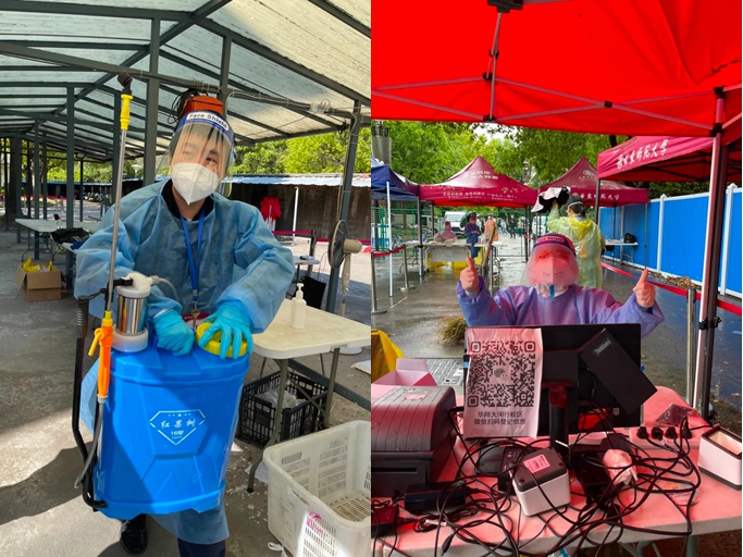 我们在温暖的春风里,总能看到各式各样忙碌的年轻身影:穿梭于食堂和供餐点、骑着电三轮风驰电掣的志愿者,风雨无阻、起早摸黑地帮助食堂售卖三餐的志愿者,不厌其烦地声声提醒保持两米间距的核酸检测点维持秩序的志愿者,挥汗如雨文生变武圣的物资搬运志愿者,骄阳下身穿大白、背着几十斤重的消杀喷雾器的消杀防护志愿者,封控楼里奔上跑下送餐到户、送水到人的层长楼长志愿者,不论黑夜白天帮助同学就医取药的志愿者……