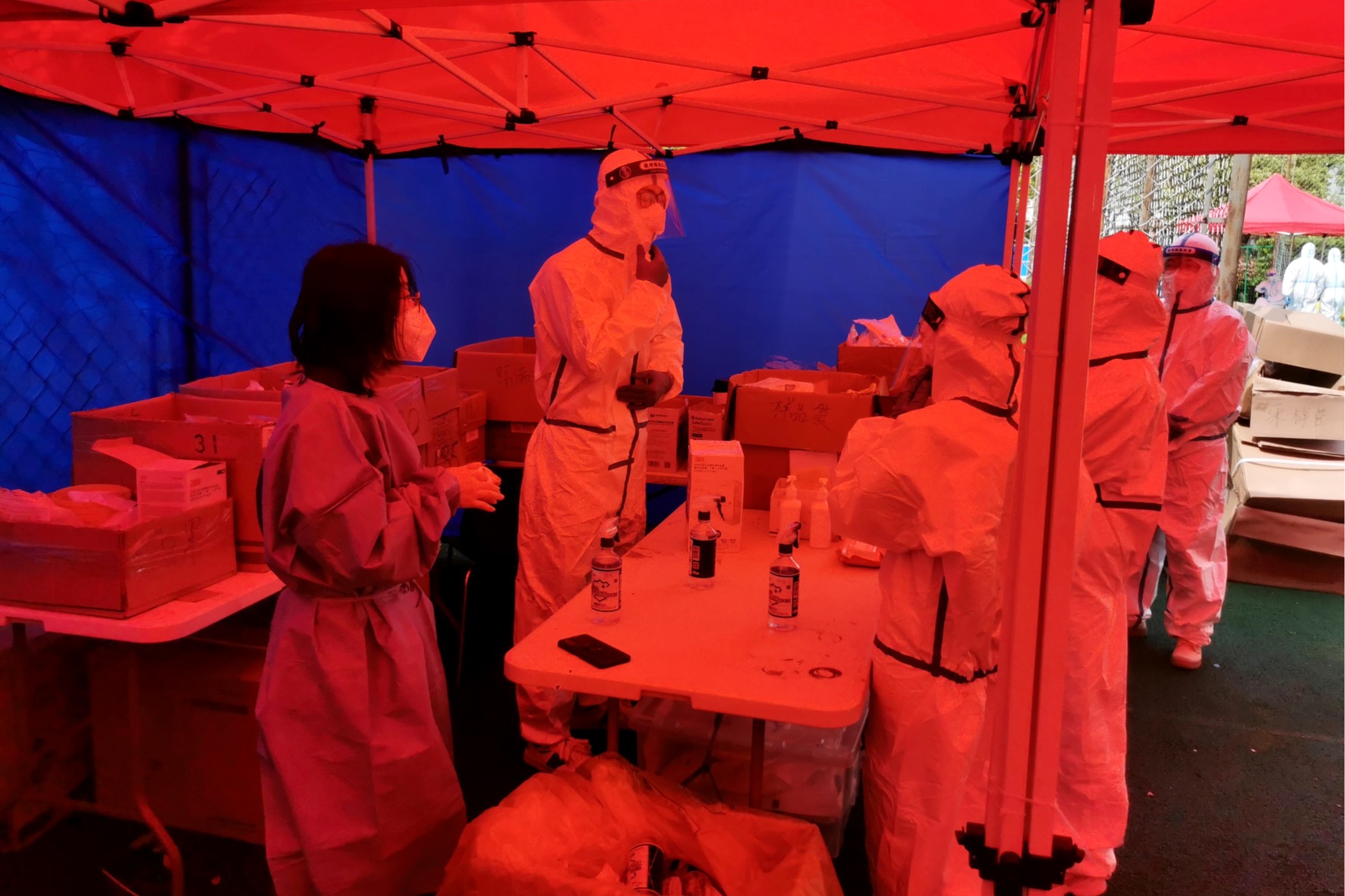4月23日,上海突然大幅降温。伴着风雨交加,体感温度直接降至10度以下,不少老师又重新把羽绒服穿上了身。面对突变的天气,当天的核酸还得正常进行。