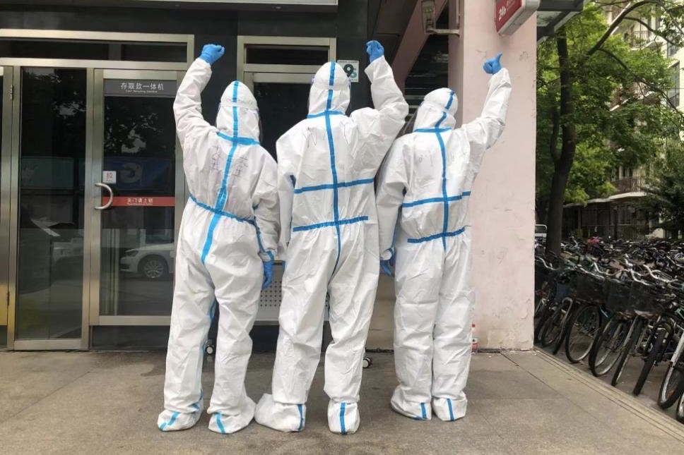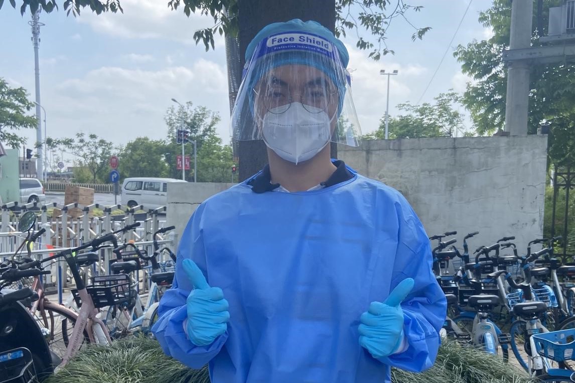 这是我第一次穿上“大白”,从中午十二点半到下午五点,在烈日下奔走,安排志愿者上岗与换岗,逐一确认每栋楼宇是否均全员完成核酸检测等等。当脱下防护装备时,我浑身都湿了,手上也全是汗,像刚刚从水中被捞出来一样。
