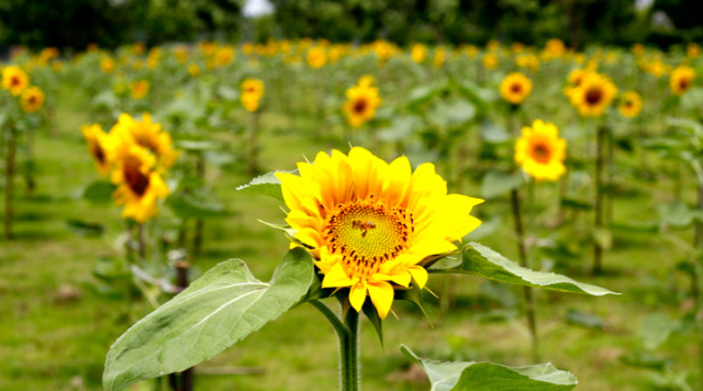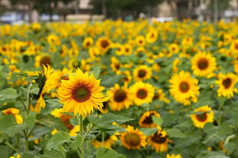 除了地学部种下的小小向日葵园,那年4月,学校后勤保障部也另辟一块空旷的草地种植向日葵,面积更大,种植了上千株。毕业季时,盛放的向日葵已经成为了华东师大闵行校区的新风景。