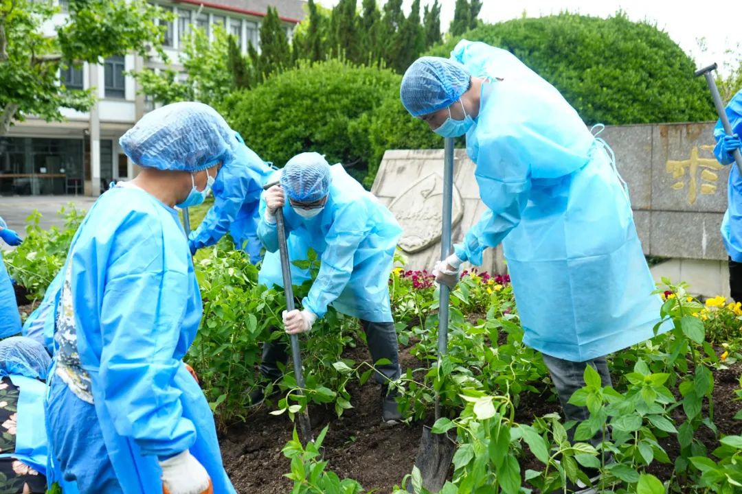 “毕业花在校园里播种,而青春之花则要在奋斗中绽放。在坚决打赢大上海保卫战的关键时刻,以此寄望包括毕业生在内的所有正在经历艰巨战疫的同学们,在担当中历练,在尽责中成长,成为有理想、敢担当、能吃苦、肯奋斗的新时代好青年。”驻守两校区的校领导和部分在校师生们一同种下毕业花。