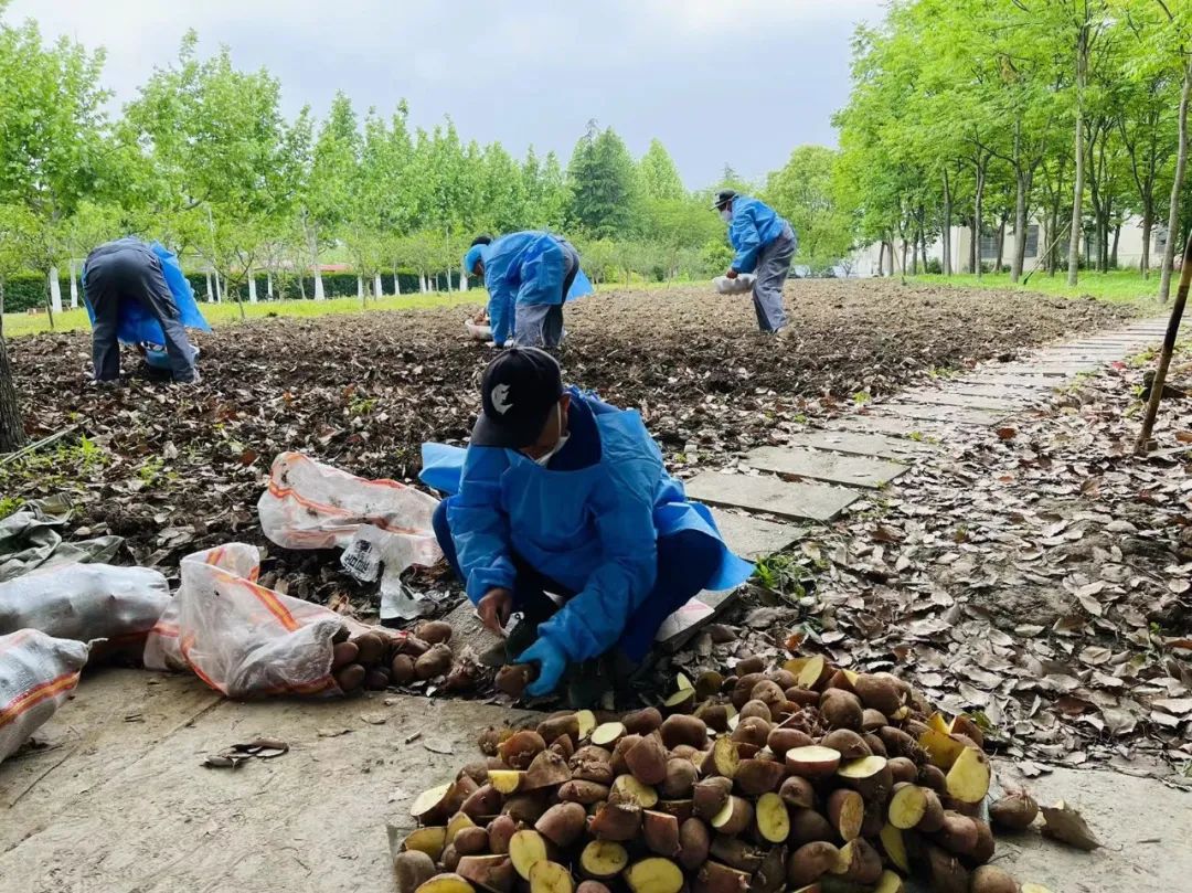 马铃薯,通称土豆。在今年疫情防控条件下,澳门永利皇宫官网入口校园环境管理中心的员工们就地取材,将近一段时间来食堂选菜时分拣出的发芽土豆,累积起来,种植在夏雨厅东面已平整好的一块空地上。
