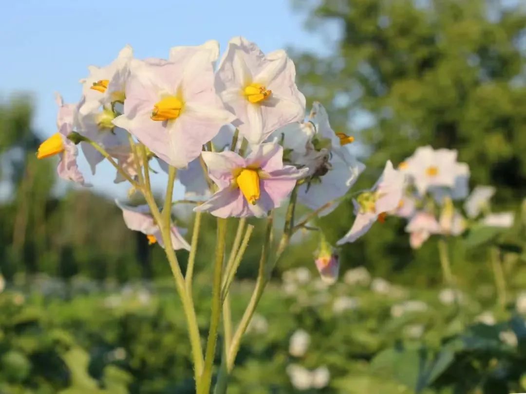 大家有所不知,土豆开花成片绽放时极为惊艳。作为全球第四大粮食作物,土豆外表朴实,默默生长;土豆花亦放,紫白自芬芳。