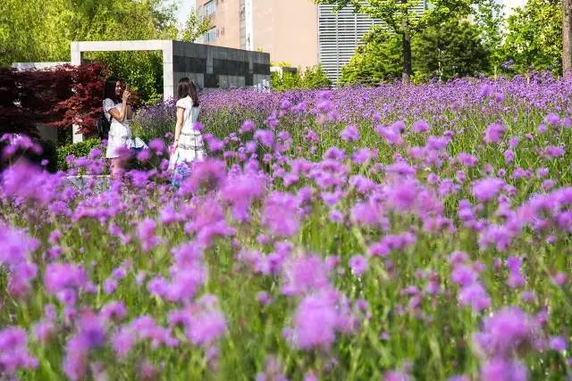 后勤保障部介绍,当时有两个方案,一个是种植薰衣草,但是因为这里碱性土壤不适合薰衣草生长,为了给同学们一个温馨美丽的校园环境,选择种植了柳叶马鞭草,也希望能够和向日葵、油菜花一样成为一道特别的校园景观。
