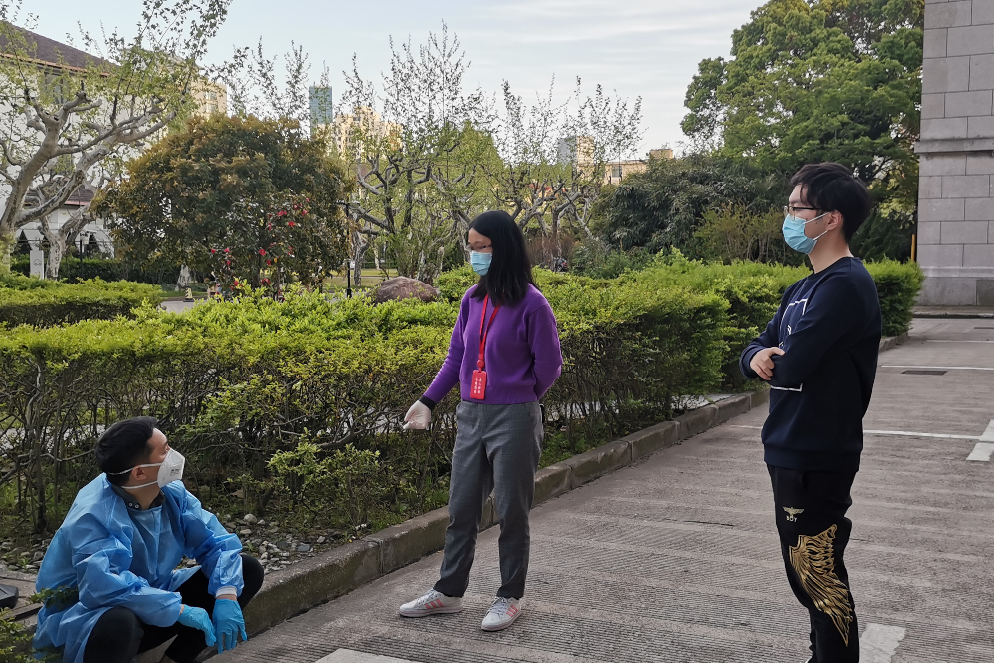 因为这场“战疫”,让来自不同部门、学部、学院的教职工走到一起,众志成城,同心抗疫,践行着华东师大的“三全育人”综合改革理念。八栋宿舍楼里三人工作组的老师们总是有问题一起商量,有困难一起上。