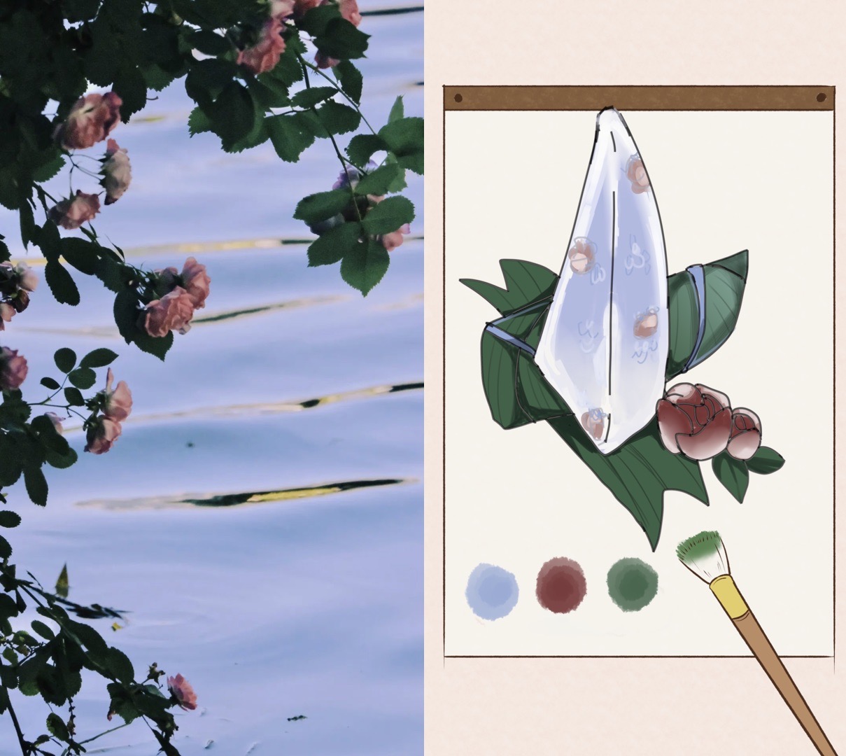 踱步来到河畔,水波清漾。一朵落英像一艘漂着的小小船儿,载着一只鲜花酱粽子的芬芳。