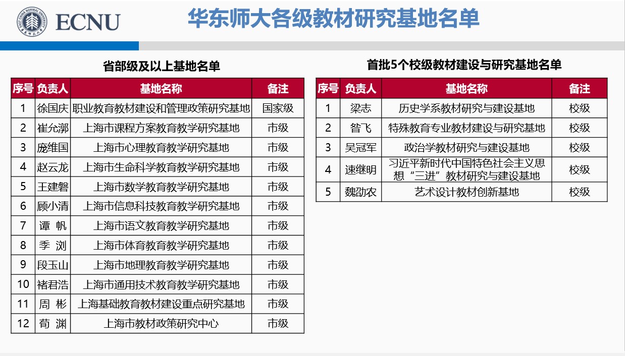 华东师大各级教材研究基地名单