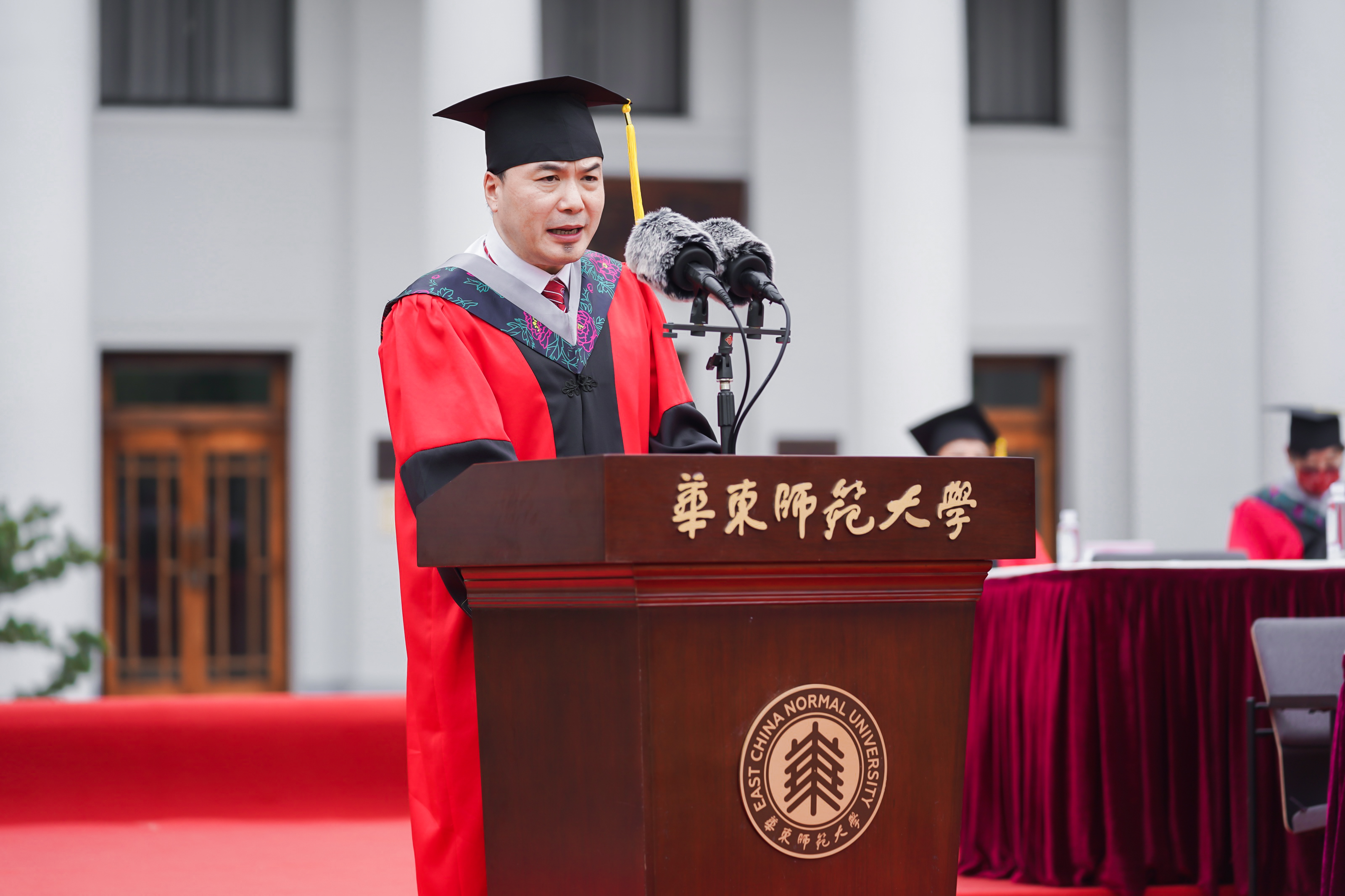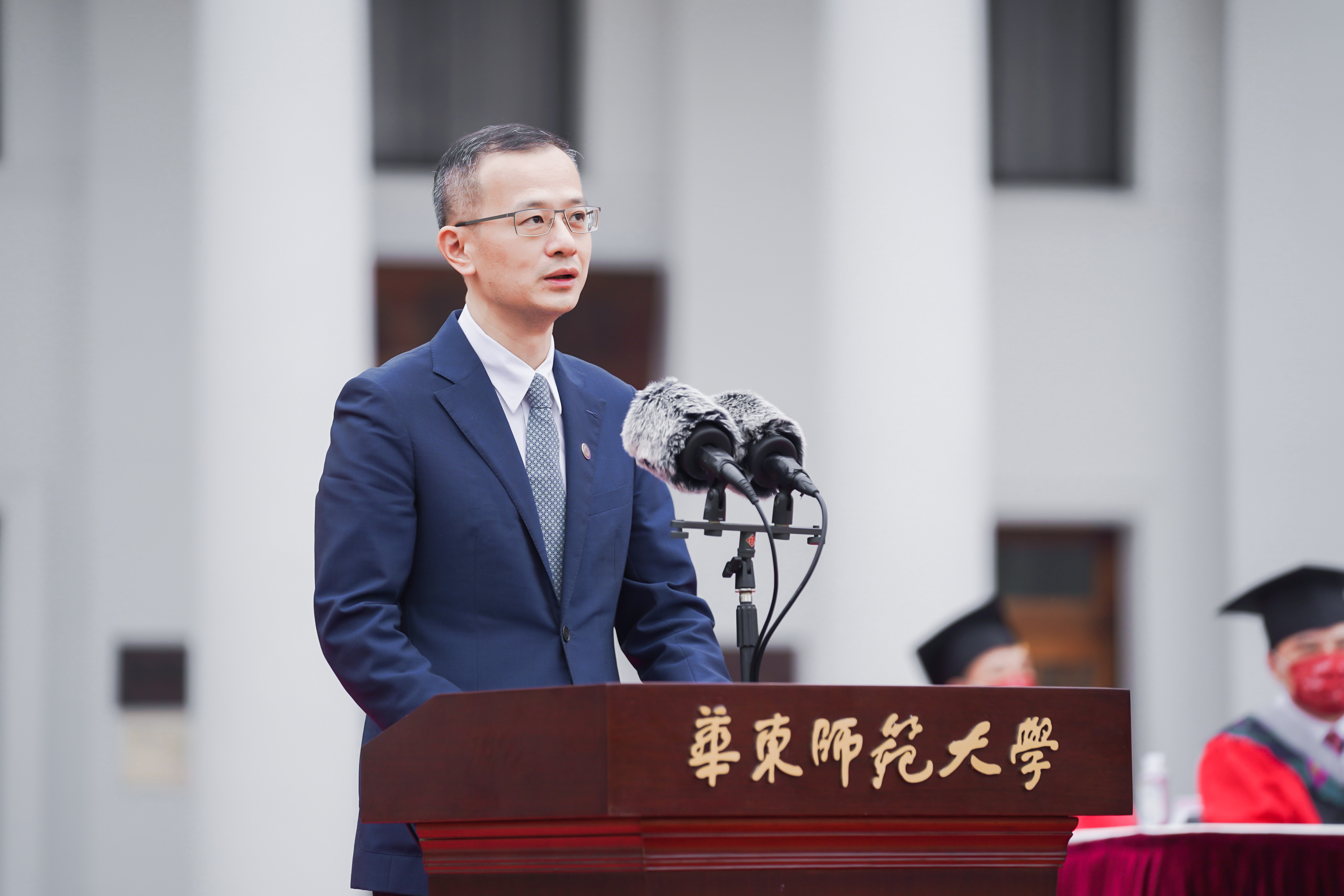 1994级房地产系本科、2010级世界经济博士研究生校友,易居企业集团首席执行官丁祖昱先生作为校友代表,赞美了华东师大的毕业生在疫情期间直面危难、积极承担志愿者工作,为学校、社区和社会的抗疫尽心尽力呈现出来的担当精神,他祝福毕业生要成为“眼中有光,心中有光”的师大人,并因此特殊经历而多一份对人类的包容和悲悯的情怀。