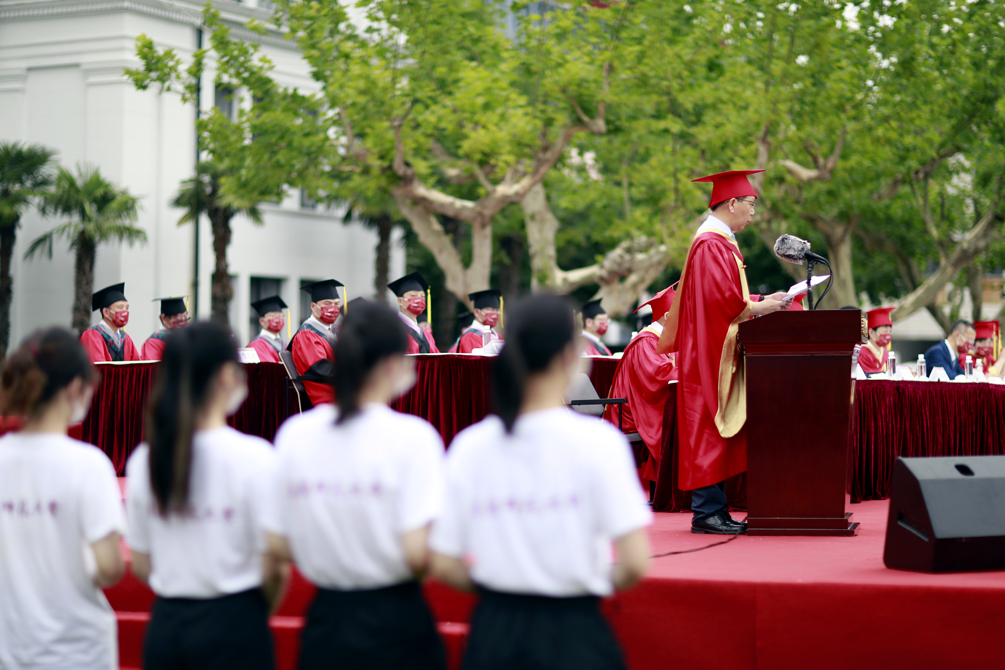 6月21日夏至,澳门永利皇宫官网入口2022届毕业典礼在两校区以分区块、错时空的方式露天举行。