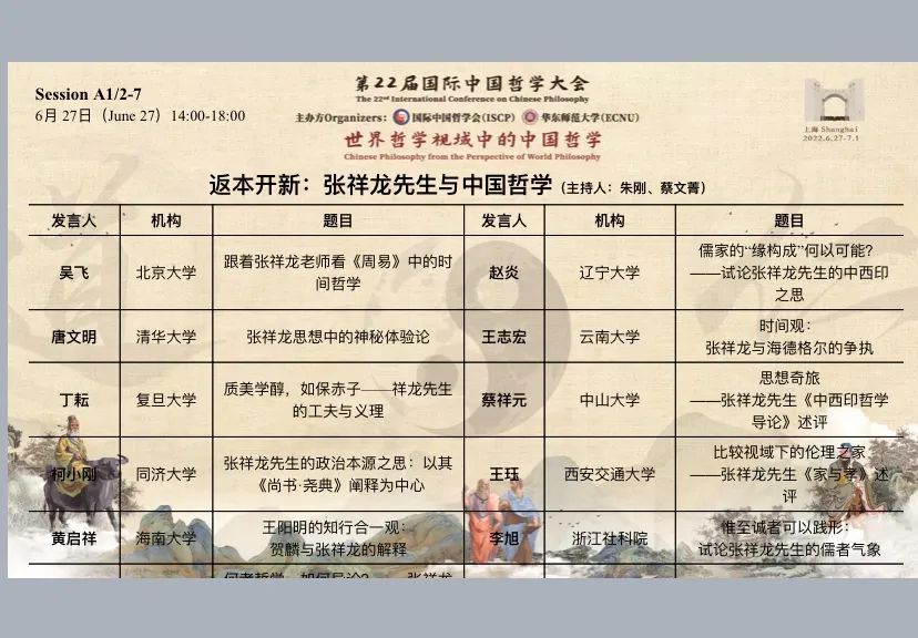 14:00-18:00,两场纪念张祥龙教授(今年6月8日去世,大会新添议程)研讨会,此为部分会议议程
