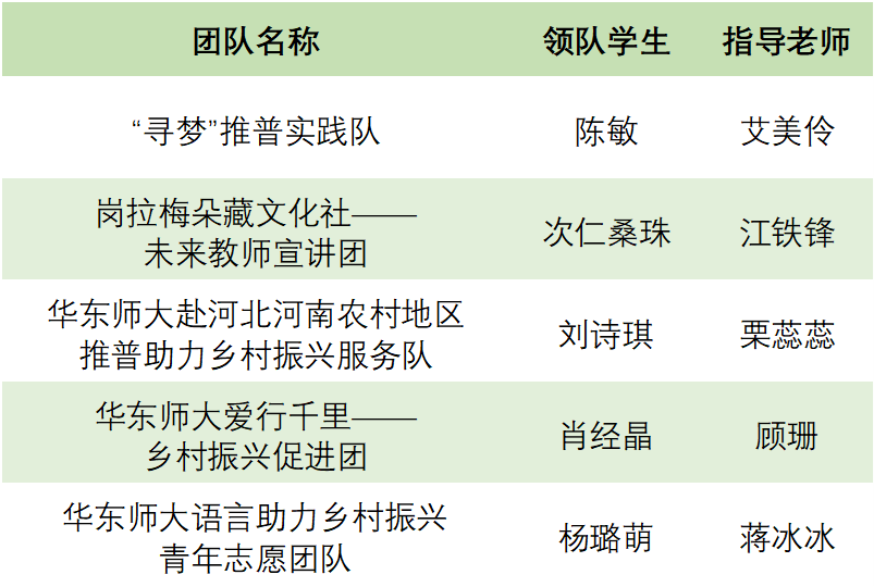 “推普助力乡村振兴”2022年全国大中专学生暑期社会实践志愿服务活动名单公布,全国958支团队组队,华东师大5支队伍入选,组队数上海第一。