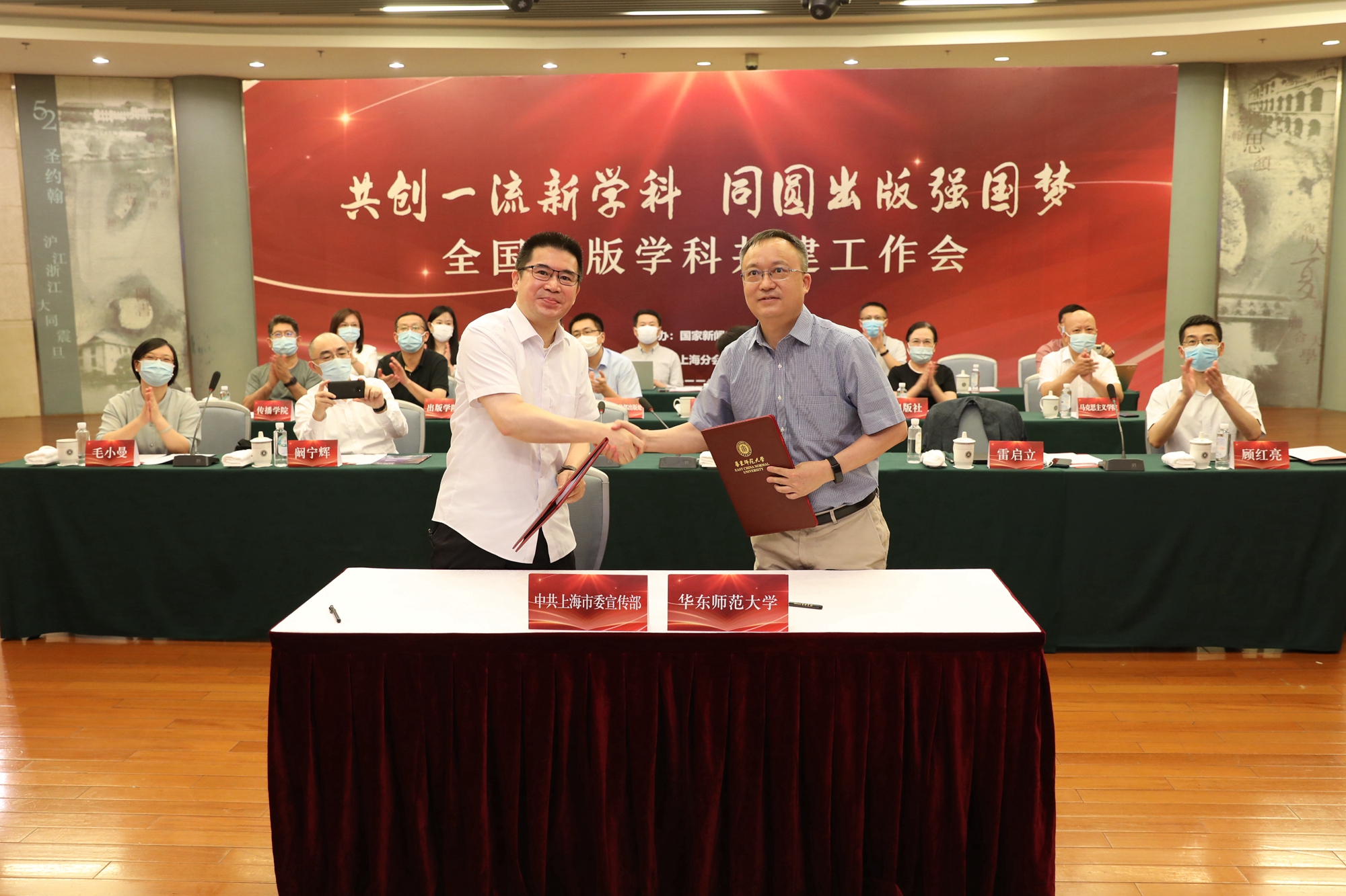中共上海市委宣传部副部长、上海市新闻出版局(版权局)局长徐炯和澳门永利皇宫官网入口副校长雷启立作为共建双方代表签署合作协议