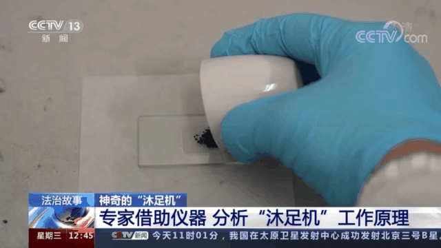 接下来,陈立松团队对水中产生的黄褐色物质,也就是商家宣称的泡脚时排出的“毒素”进行了重点分析。经过抽滤、干燥处理后,得到一种结晶状物质,再通过“X射线衍射法”进行了分析。
