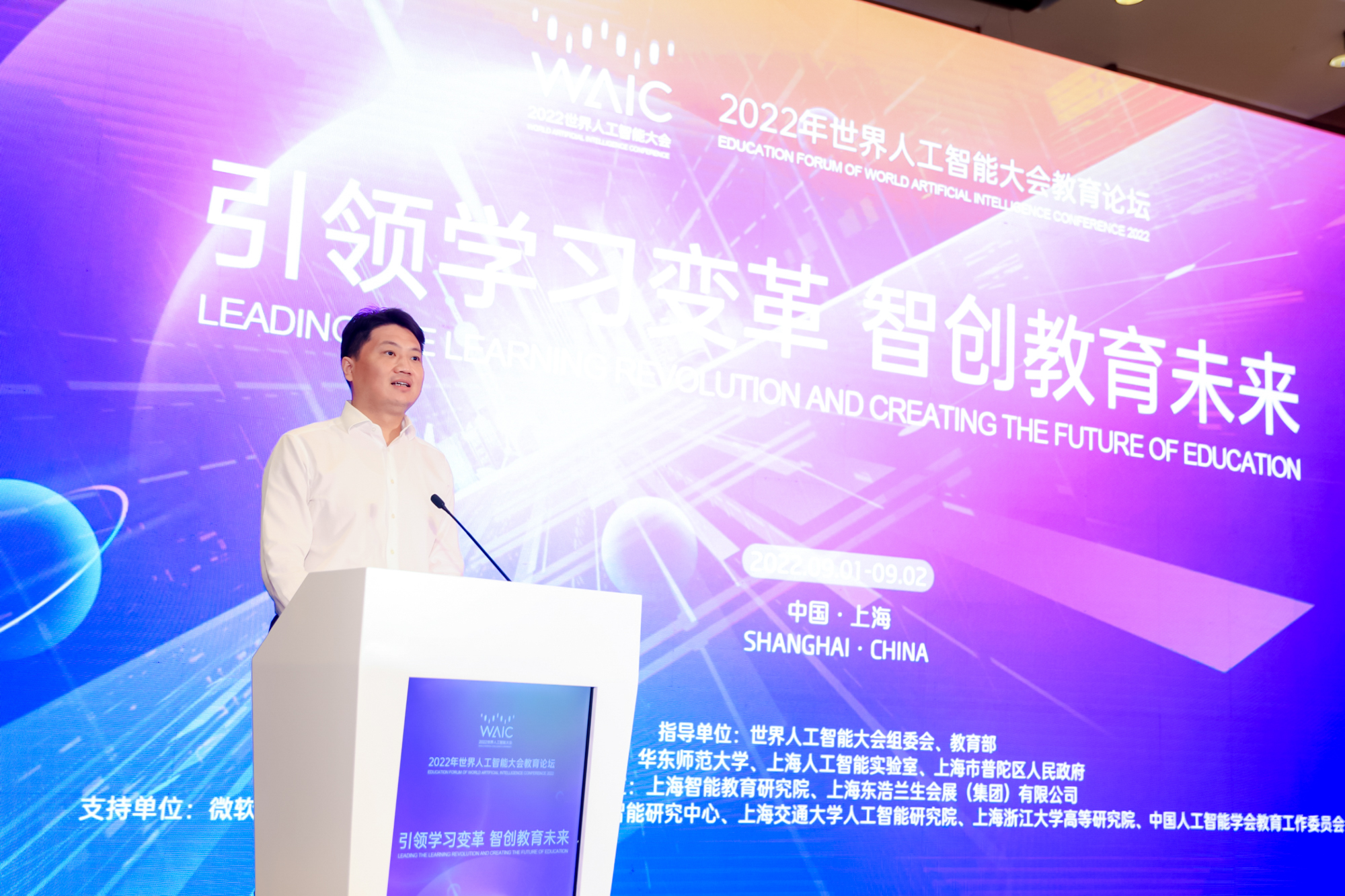 9月2日上午,“2022世界人工智能大会教育论坛”普陀会场于环球港凯悦酒店开幕。本次会议由智能学习、智能测评和教育元宇宙三大模块组成,既有提纲挈领的宏观视野,也有步履实地的创新应用产品演示。各位专家学者立足数字化、管理、伦理、5G、元宇宙等领域,描绘展示了智能教育的系统应用与未来前景。论坛通过线下会场与线上直播方式呈现,近5万人次参与活动。