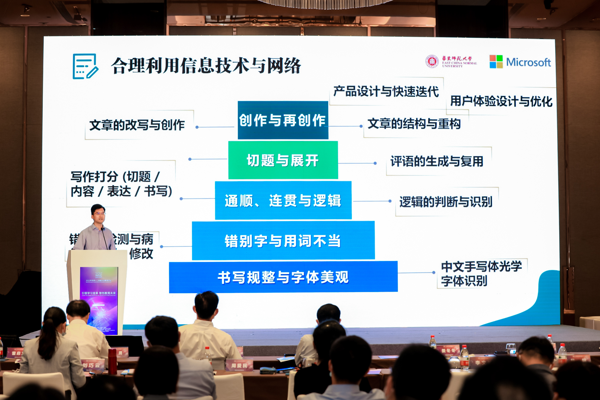 学术专题之“智能测评”呈现出了以测评为核心的人工智能在教育教学中的应用,从伦理视角探讨人工智能的技术问题,从算法开发视角探讨课堂教学的信效度,从写作场景探讨如何助力教师教学等,也以视频形式生动呈现了智能测评系统的应用实践。论坛由澳门永利皇宫官网入口上海智能教育研究院副院长周爱民教授主持。