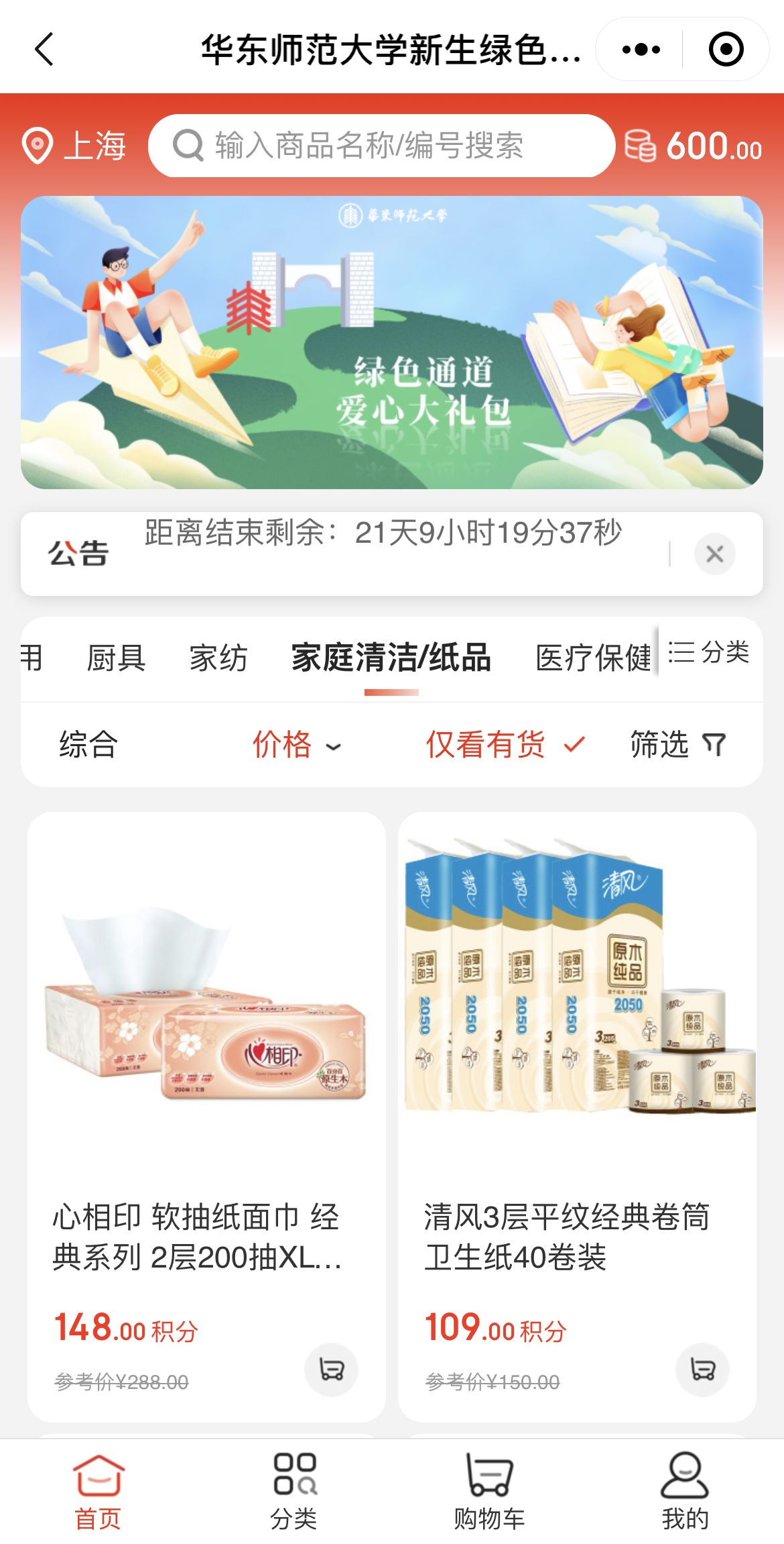 学校与京东集团合作的“云端爱心屋”,以学生自主选择商品、学校统一结算的“你下单、我买单”模式,向这部分同学发放价值600元的虚拟积分,在500余种商品中自主挑选,包括学习用品、个人洗护、家居日用、家纺用品、清洁劳防、医疗防护等多个品类。