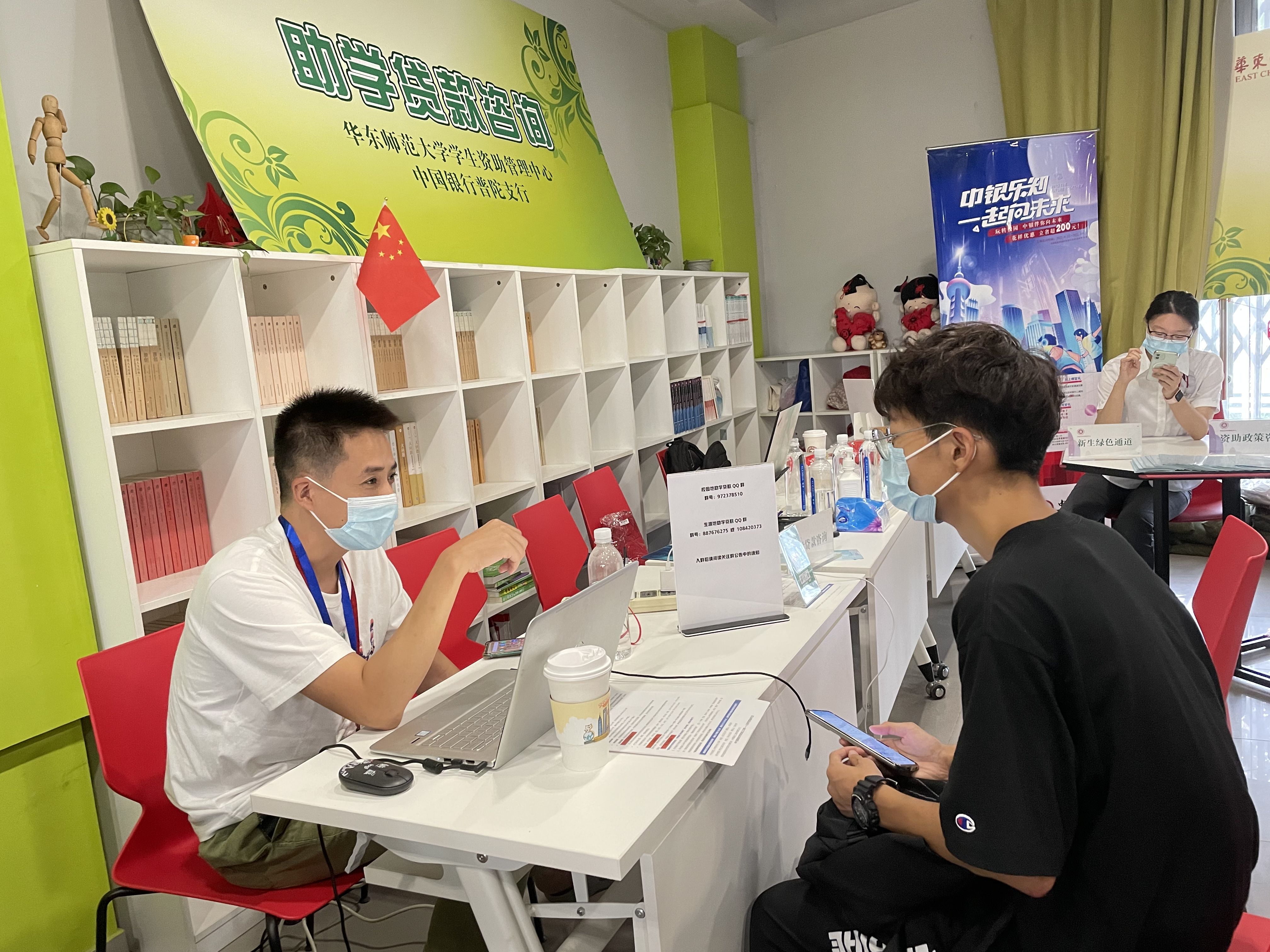 新生报到日期间,学校在两校区分别设立专门的学生资助事务咨询服务点,为新生提供奖(助)学金、国家助学贷款、勤工助学、困难补助、学费补偿贷款代偿、学费减免、绿色通道、研究生“三助”以及慈善助学等咨询与答疑。
