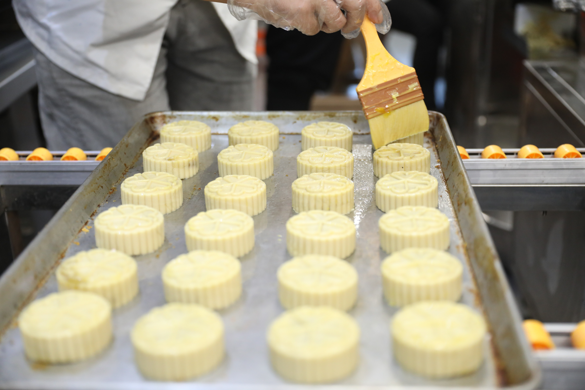 今年广式月饼的制作首次引入了自动化生产线,除了蛋黄莲蓉口味,其他口味月饼全部投入机械化生产。