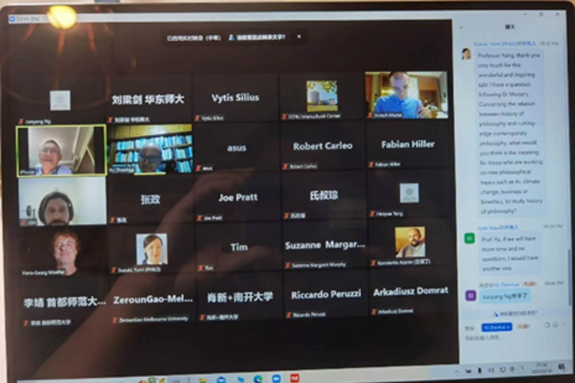 外教德安博(Paul D’Ambrosio)副教授积极筹备组织“四海为学”(Collaborative Learning)活动,邀请海内外中国哲学研究名家开展线上讲座,搭建海内外学人共研共学、交流互动的高端人文平台。德安博副教授还与芝加哥大学知名教授任博克(Brook Ziporyn)联合开设线上课程《中国哲学经典研读:以“名实之辩”为中心》,推动两校在中国哲学教研领域的深度合作。