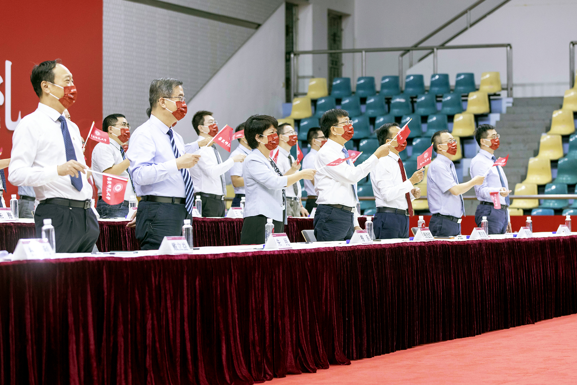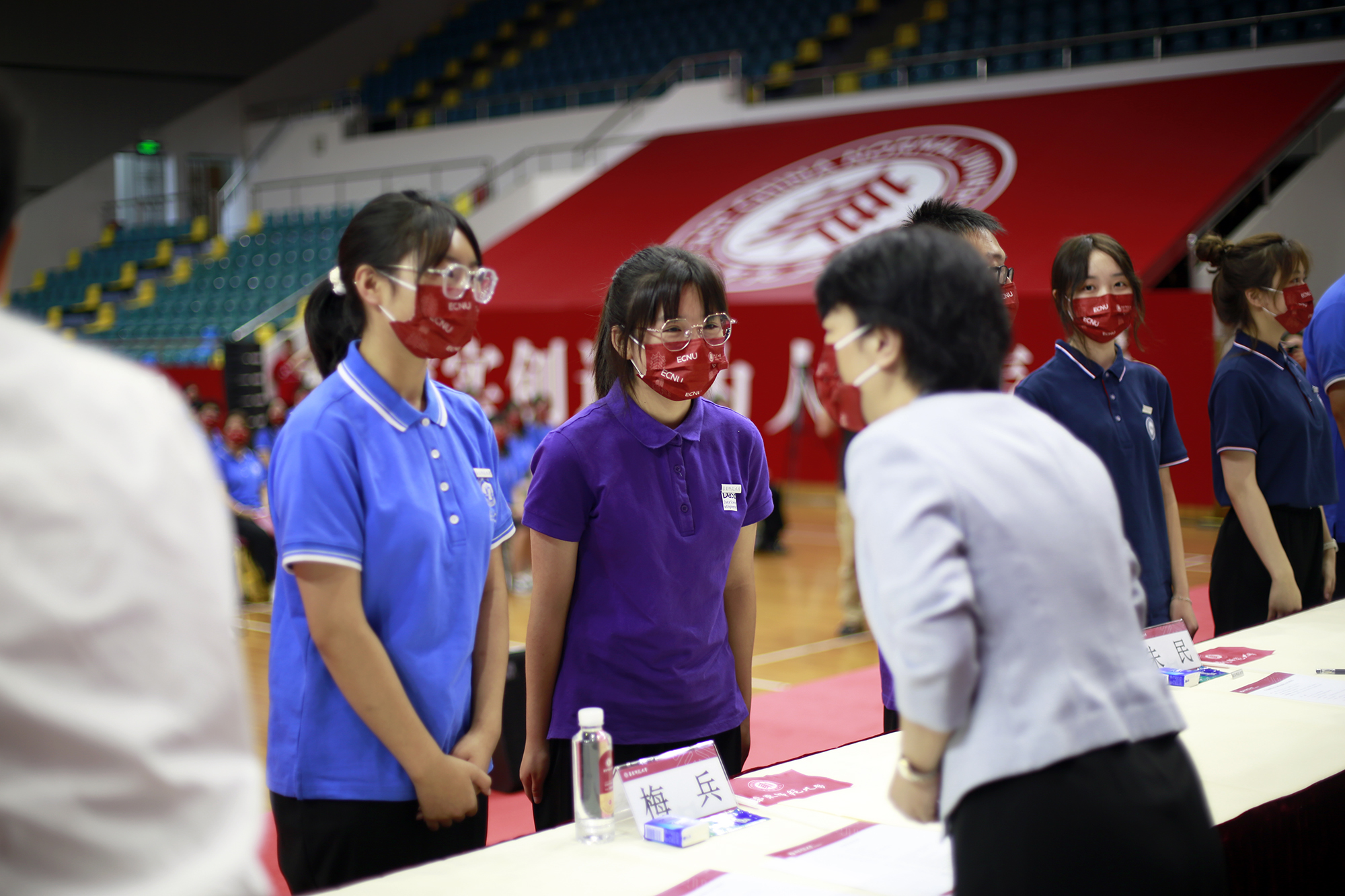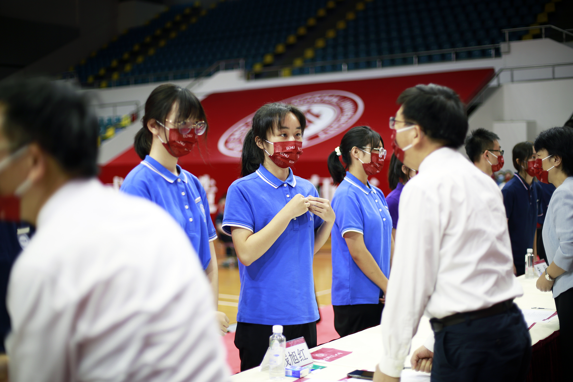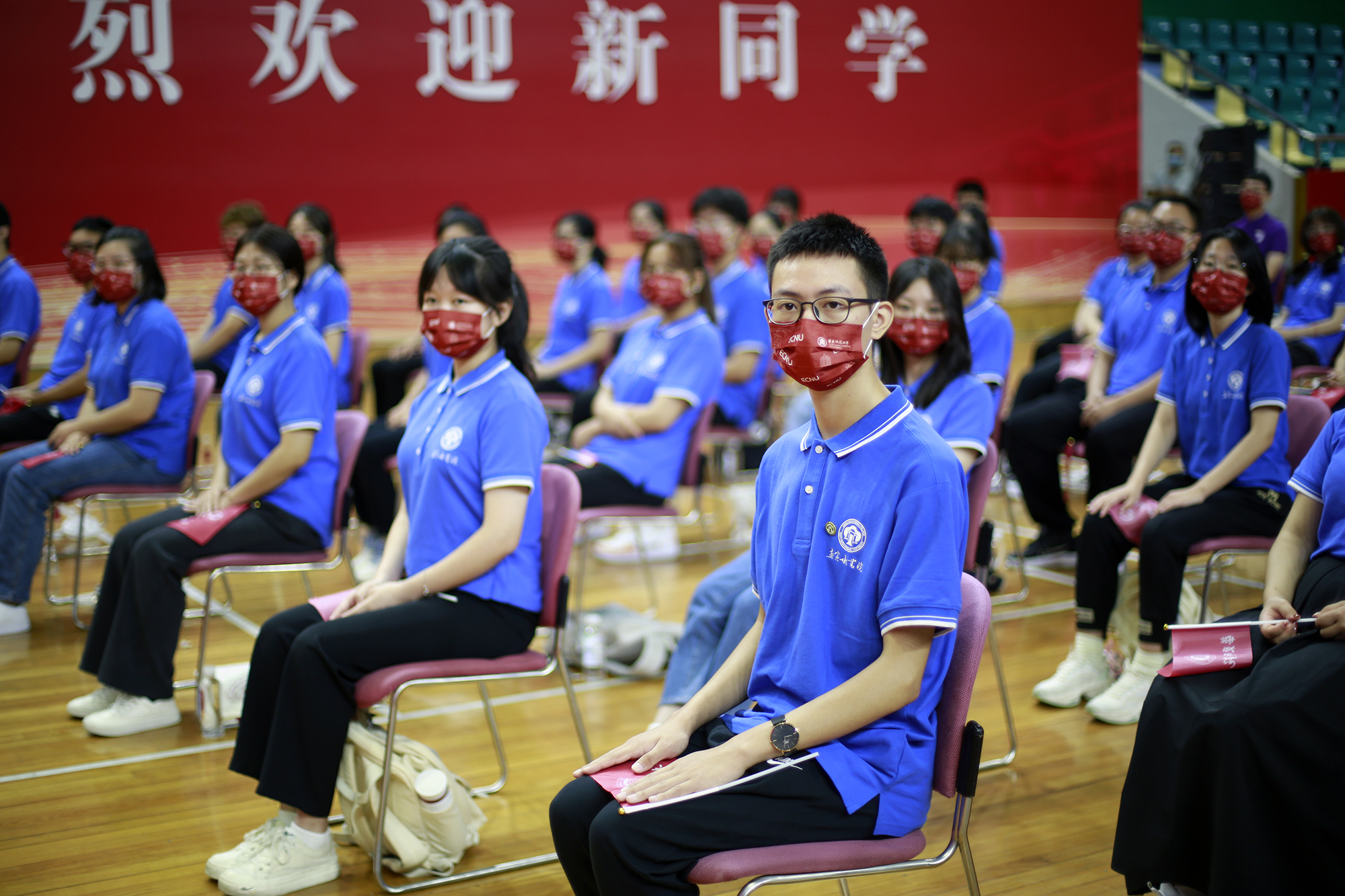 开学典礼在普陀校区体育馆主会场举行。出于防疫安全考虑,10950名来自全国和世界各地的优秀学子,以主会场和分会场以及在线直播相结合的方式相聚线下和“云端”,开启大学生活新征程。
