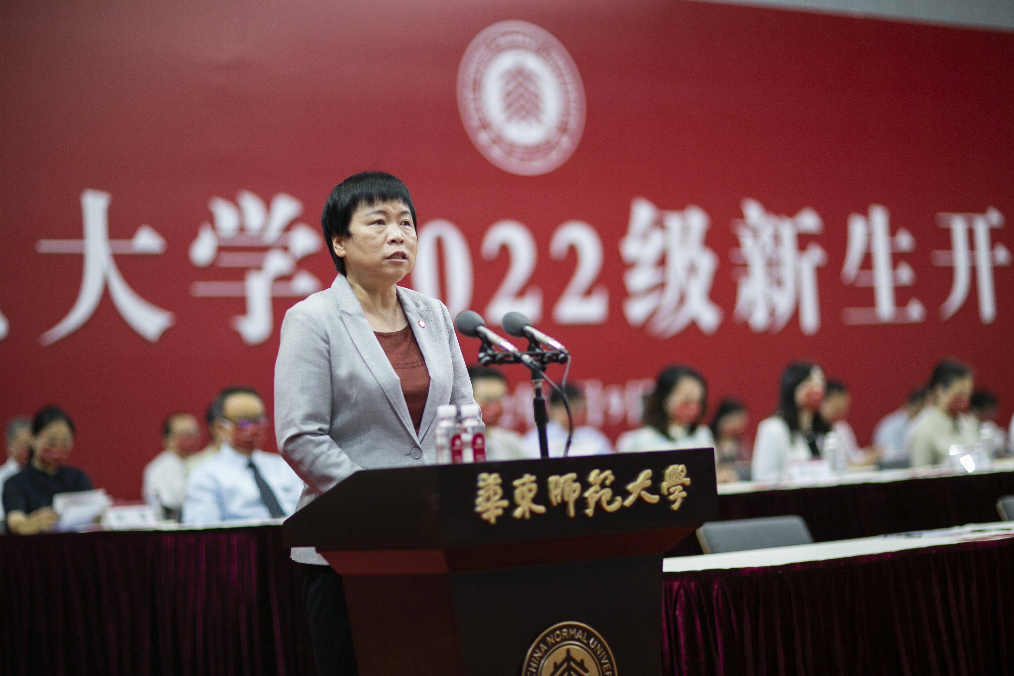 杨昌利在主持典礼时表示,开学典礼不仅是对新生入学的祝贺和欢迎,更饱含着对新生的期待和要求。她希望同学们能继续传承和发扬华东师大传统,秉持“求实创造、为人师表”的校训,认真学习领会习近平总书记近日在给北师大“优师计划”师范生的回信中对广大青年的亲切勉励,珍惜时光,刻苦学习,砥砺品格,增长本领,毕业后到祖国和人民最需要的地方去。